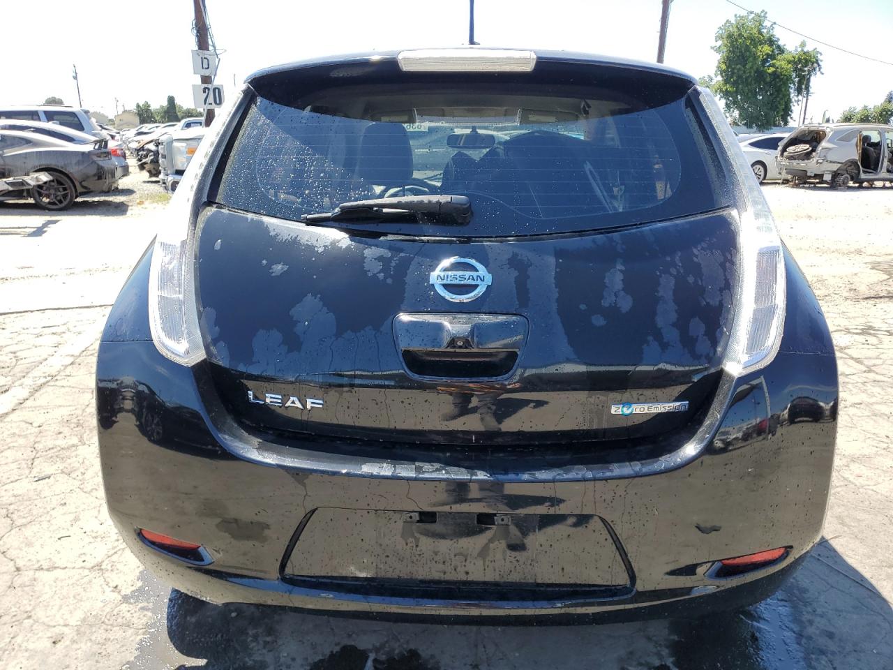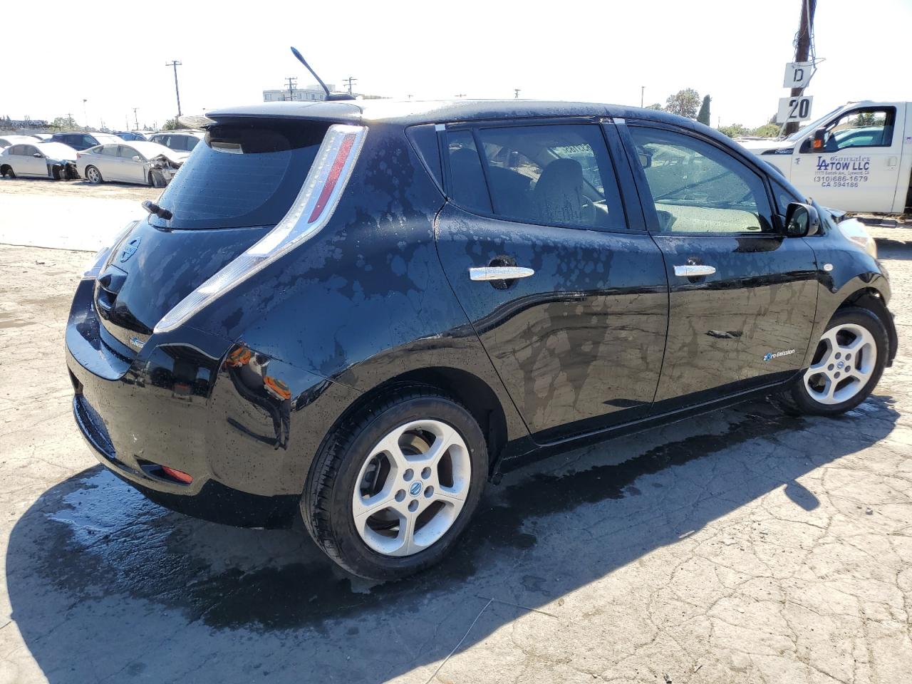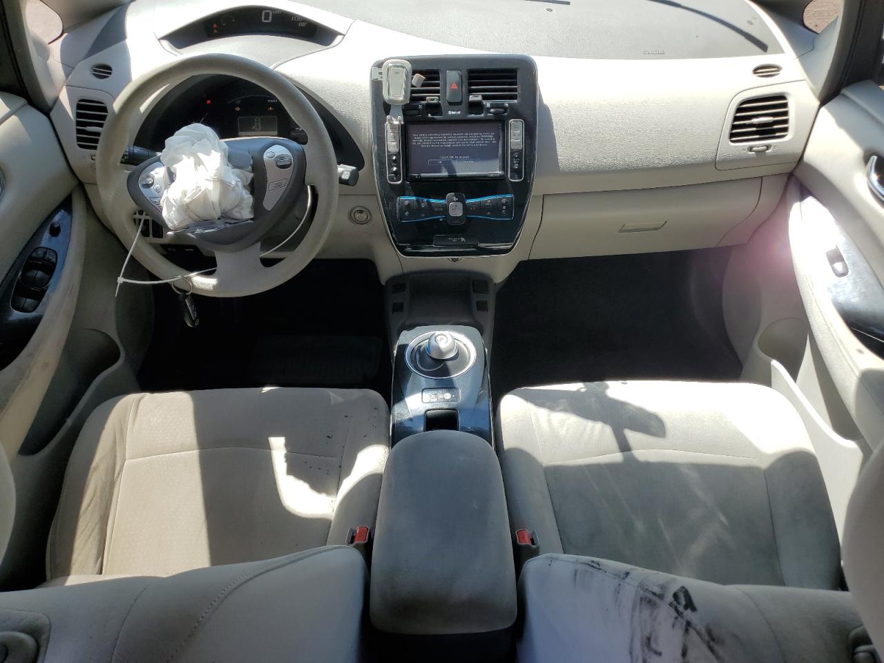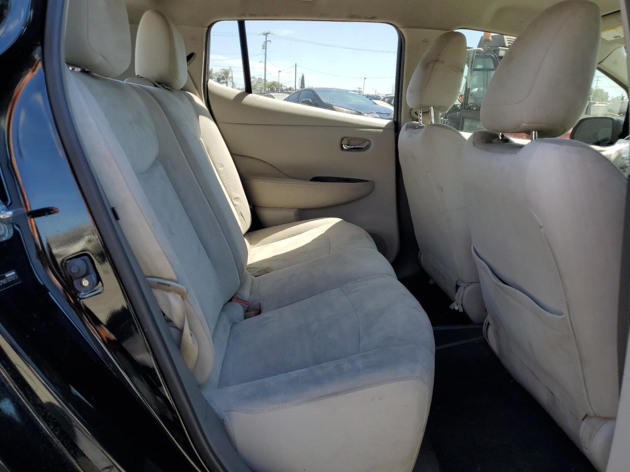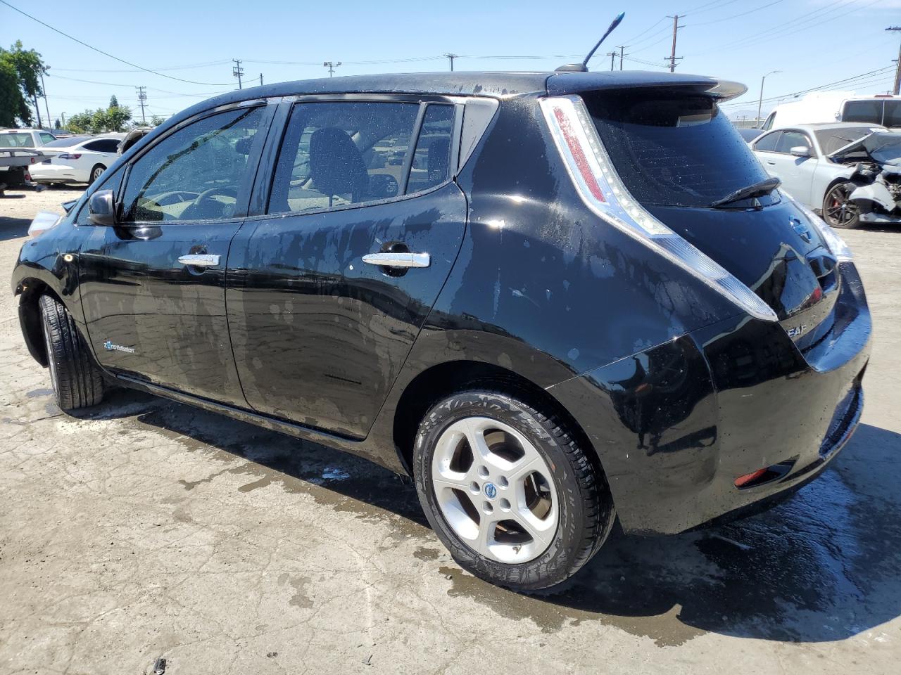 FairThis is a 2011 Nissan LEAF SV, black in color. The vehicle sustained significant front-end damage, including damage to the lights, front panel and the front bumper, the airbags has been deployed and interior is in not good condition. The car's exterior presents moderate damage overall.
