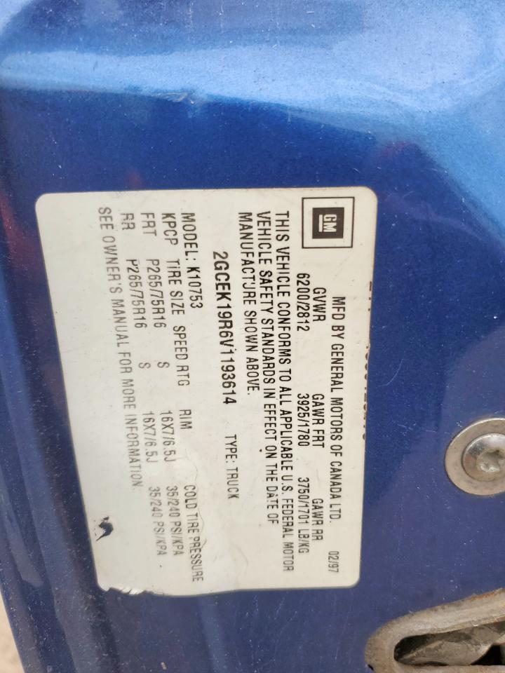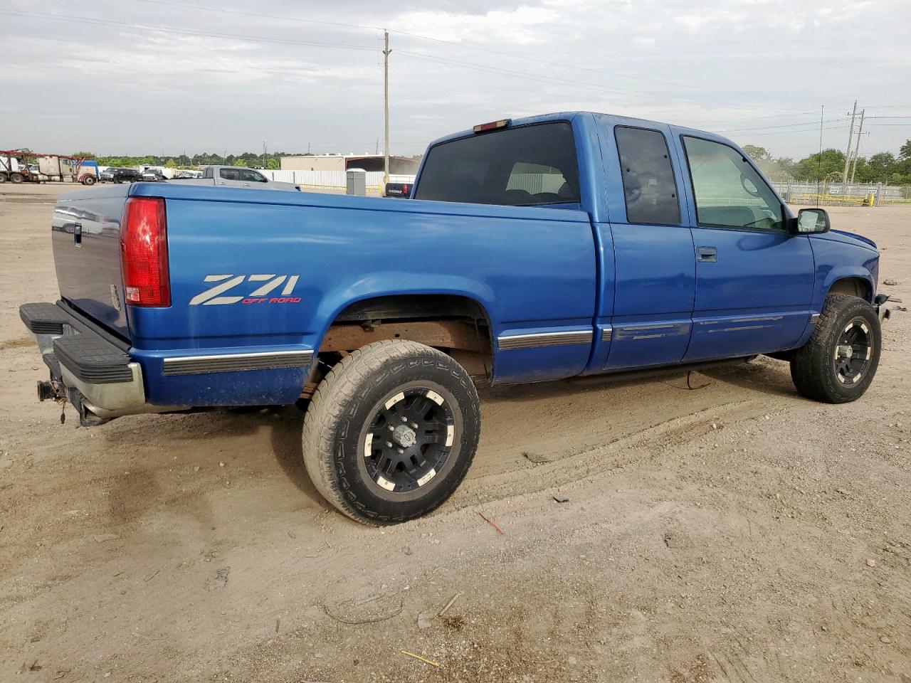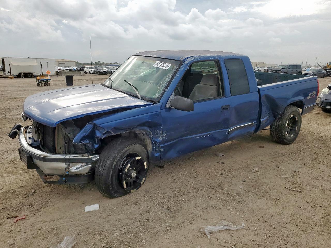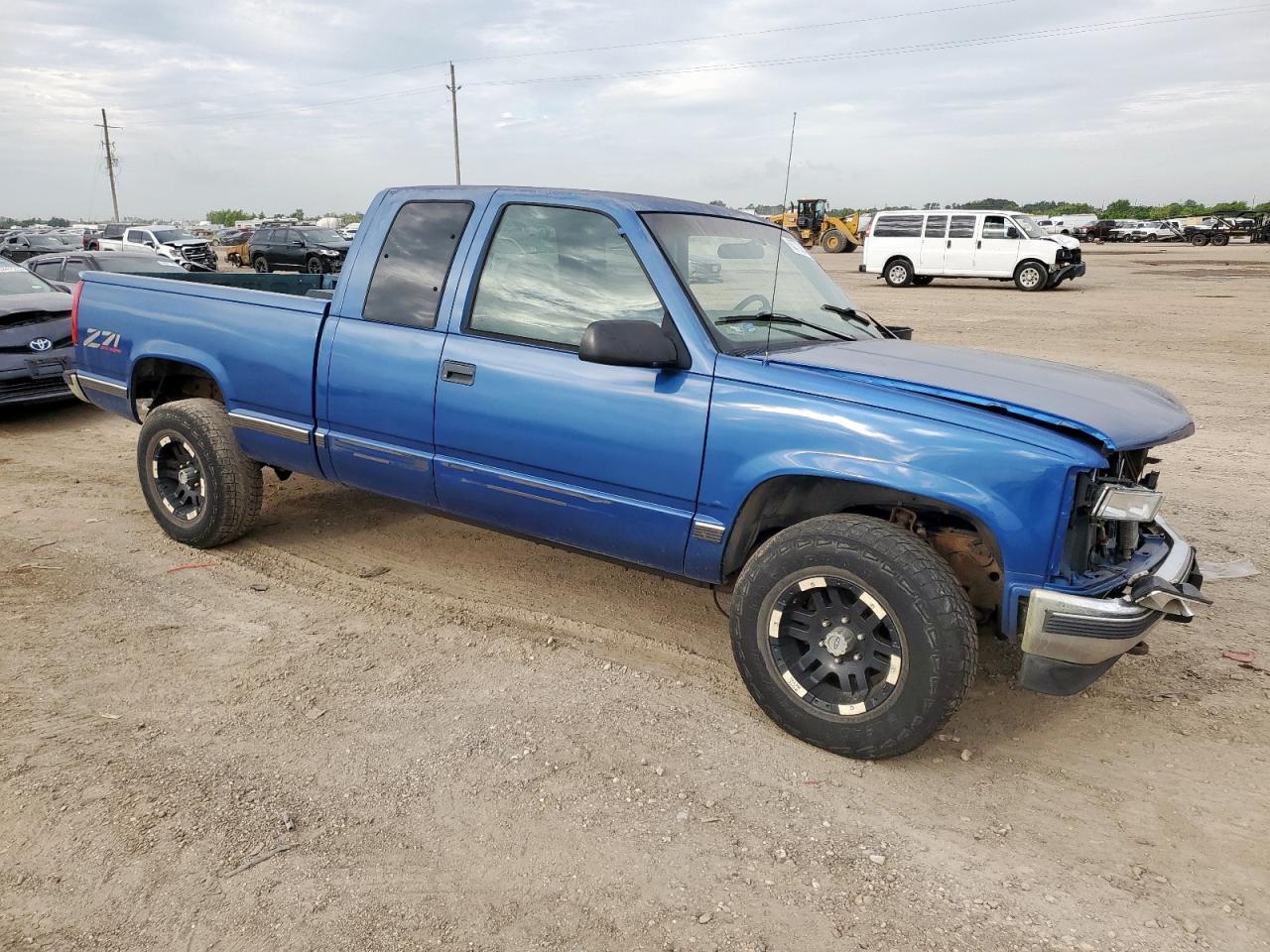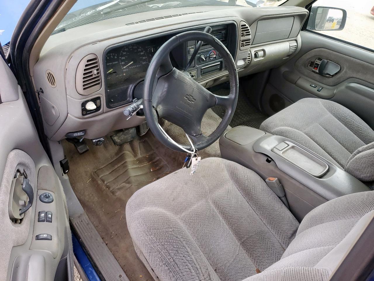 FairThis is a 1997 Chevrolet GMT-400 K1 truck. The primary damage is to the front end and secondary damage is to the side, with significant damage visible. The vehicle's color is blue. The vehicle starts.
