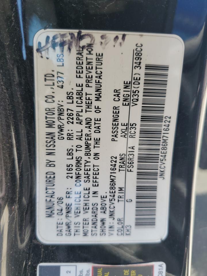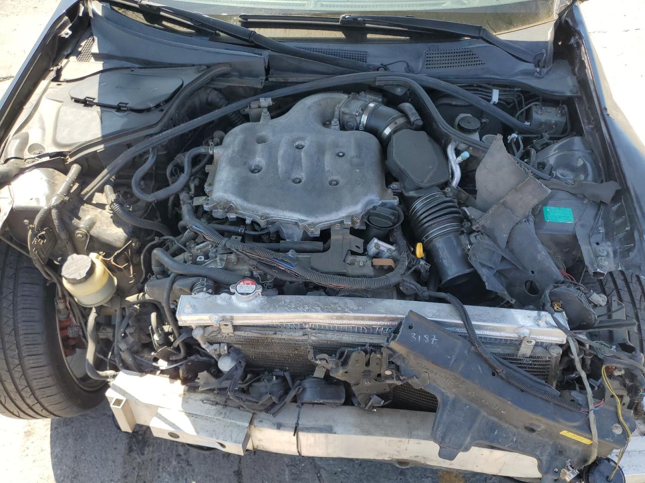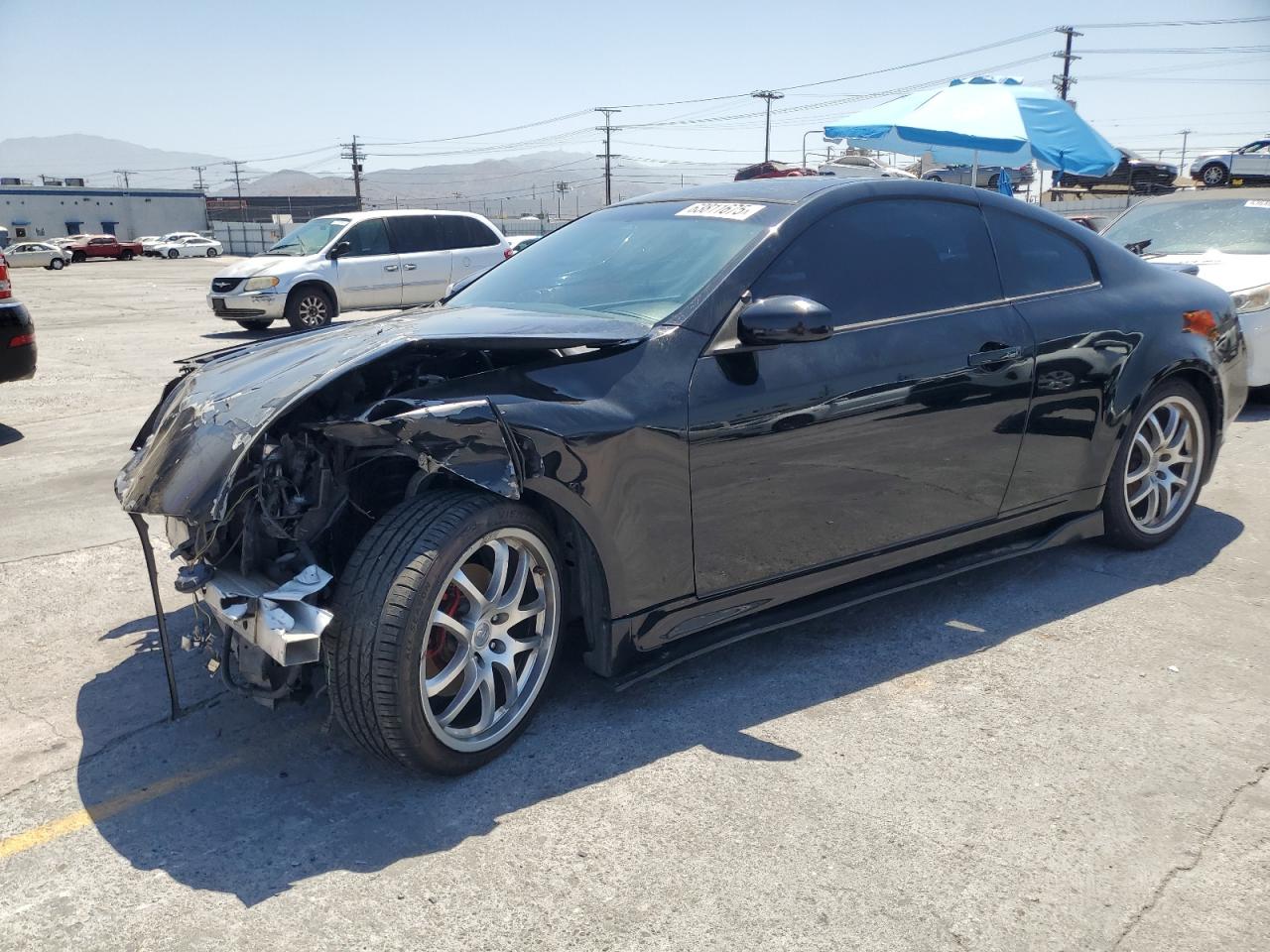 FairThis is a black 2006 INFINITI G35. The vehicle has sustained significant front-end damage, including the front bumper, hood, and fenders. The front lights and the front end of the vehicle are heavily damaged. The wheels appear to be intact, but the body panels show significant damage, particularly in the front. The airbags have deployed, and the interior shows signs of damage as well. The vehicle's overall condition is poor, requiring extensive repairs.