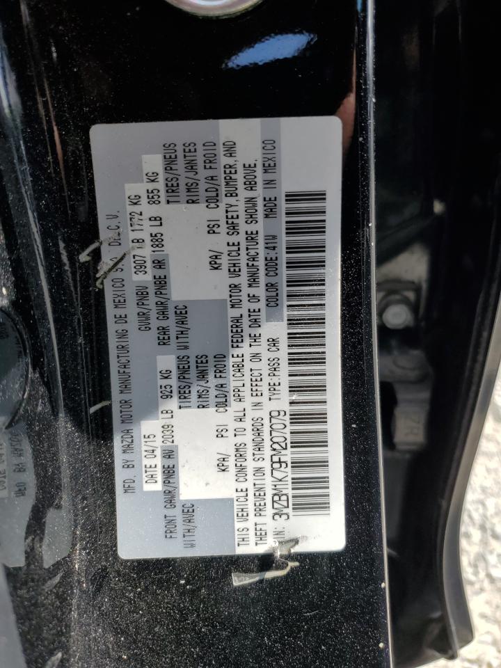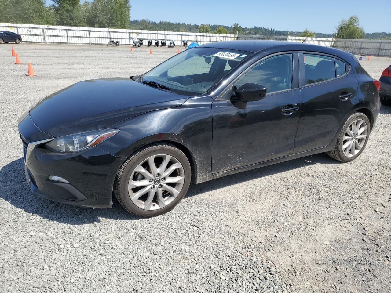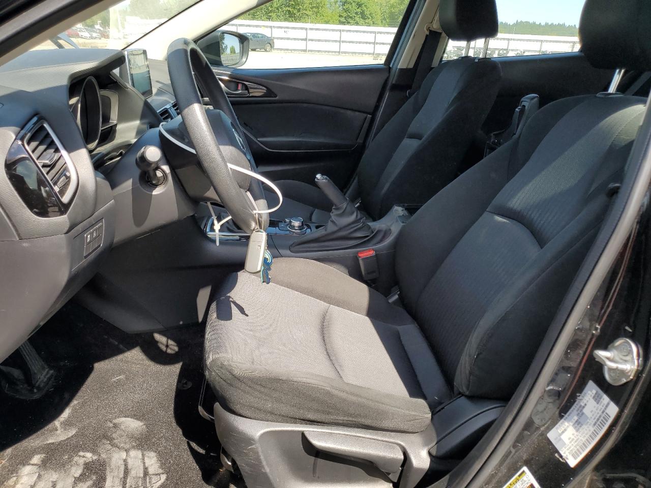 FairThis is a black 2015 Mazda 3 Sport, classified as Run & Drive Verified. The primary damage is to the front end, with no secondary damage indicated. The car has black interior. The vehicle's overall state and condition is fair due to the front-end damage, which may require significant repair, despite the car still being drivable. Wheels and lights appear to be functional, with glass panels appearing intact. Interior shows moderate visible damage, consistent with age and mileage.