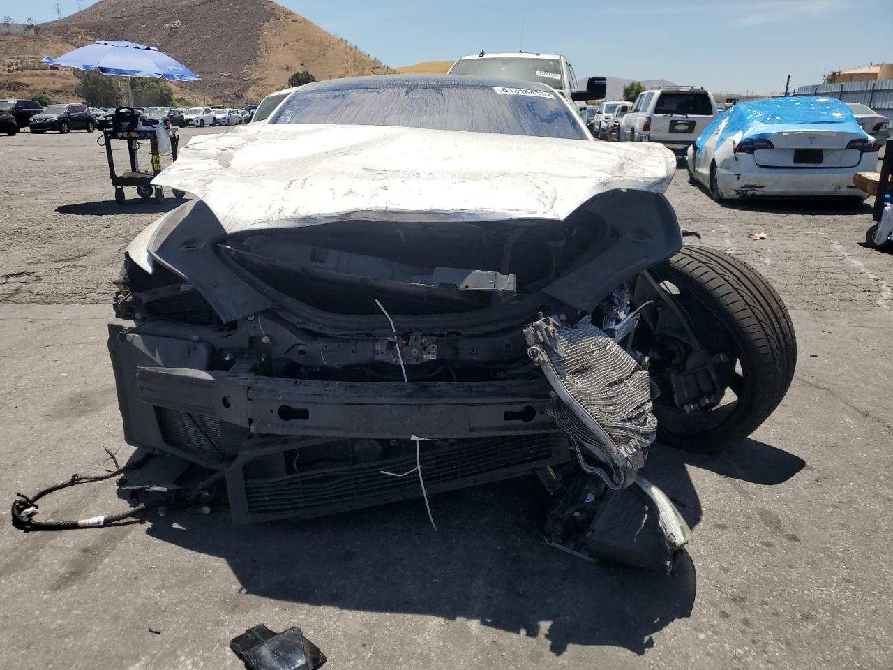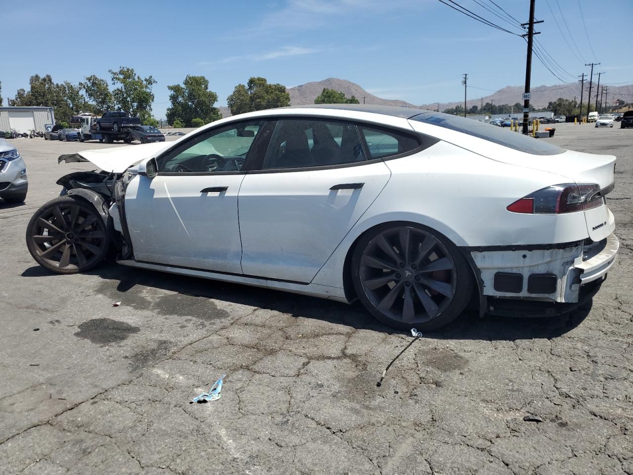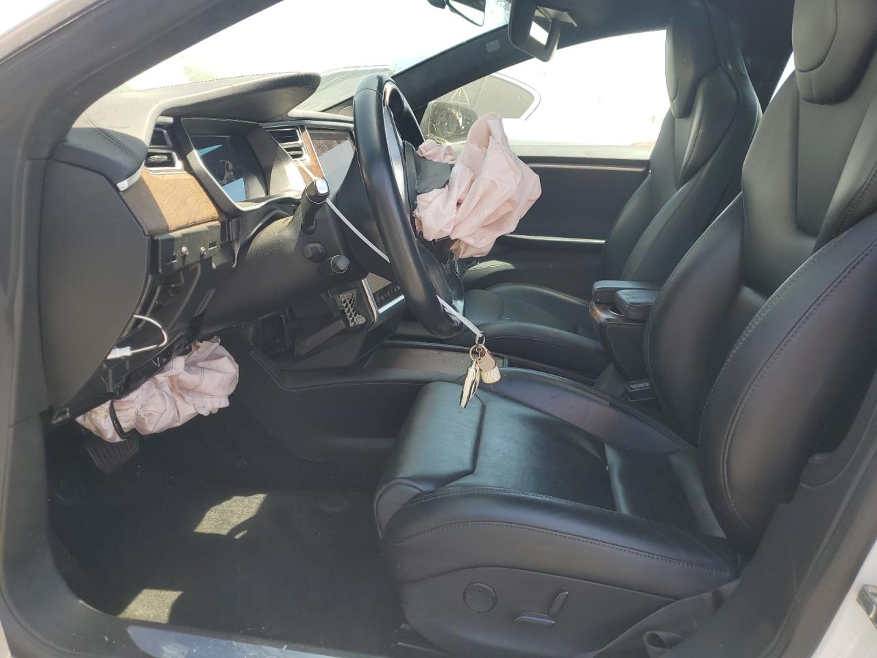 PoorThis is a heavily damaged 2017 Tesla Model S. The primary damage is to the front end, with significant impact. Secondary damage is evident at the rear. The car is white. The front end shows severe damage, including the front bumper, hood, and potentially structural components. The wheels appear damaged, and the lights and glasses also sustained damage. The interior shows deployed airbags and other damage. The car is not drivable and requires extensive repairs.