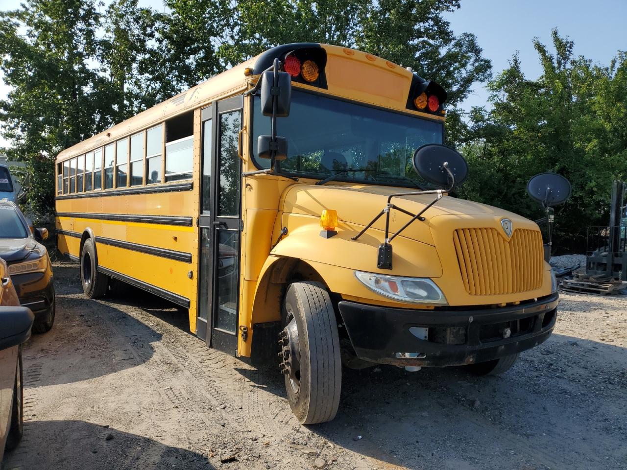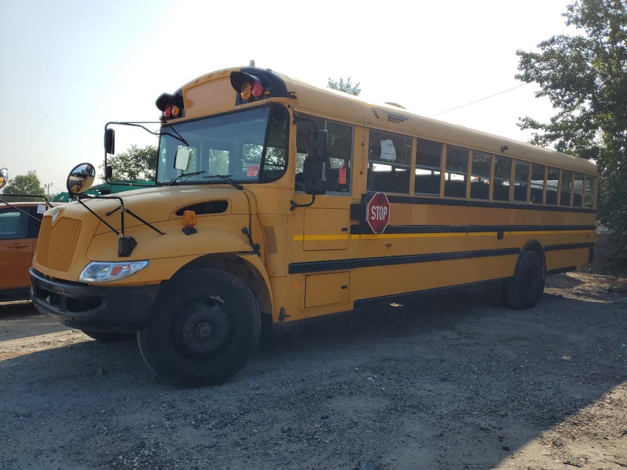 This is a 2014 IC Corporation 3000 CE school bus, displaying primary mechanical damage and no secondary damage. The exterior is yellow. The vehicle shows signs of wear and tear consistent with its age and usage. The wheels appear to be in good condition, with no significant visible damage. The lights appear to be functioning. The interior shows some wear. The airbags' status is not available in the provided images.
