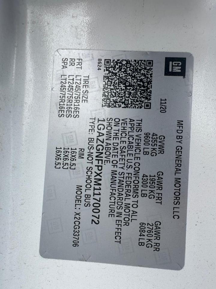 GoodThis is a white 2021 CHEVROLET EXPRESS G3. The vehicle exhibits minor cosmetic damage, primarily consisting of dents and scratches on the body. The wheels, lights, and glasses appear to be in good condition. The interior shows normal wear and tear. This van is drivable.
