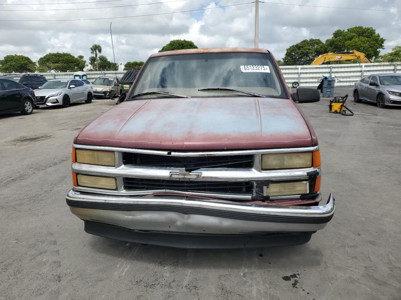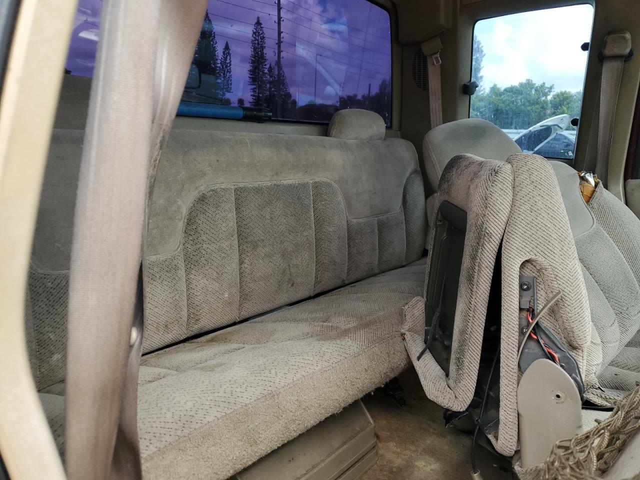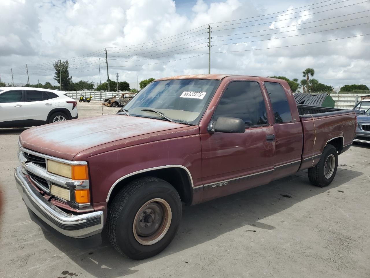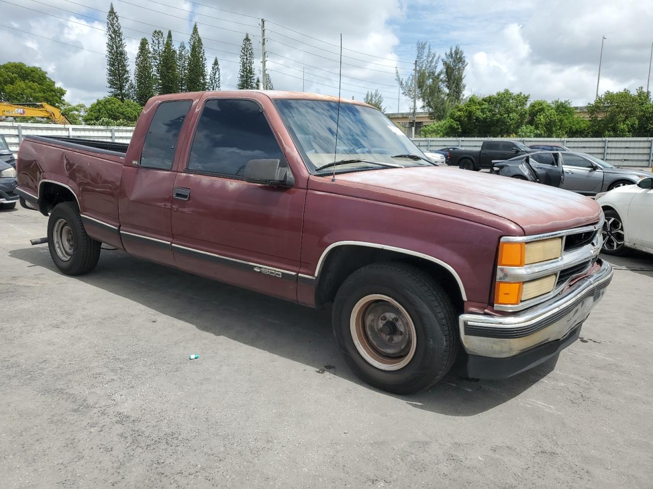 FairThe CHEVROLET GMT-400 C1 1998, maroon in color, presents with significant damage to its rear end, body panel damage, and a compromised front end. The interior shows wear and tear, indicating a need for potential repairs. The vehicle's overall state reflects its exterior and interior conditions. The wheels, lights, and glasses appear intact, but the overall appearance suggests a need for restoration. The car is drivable.