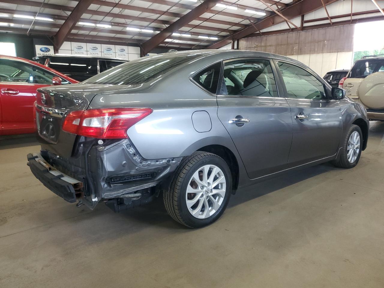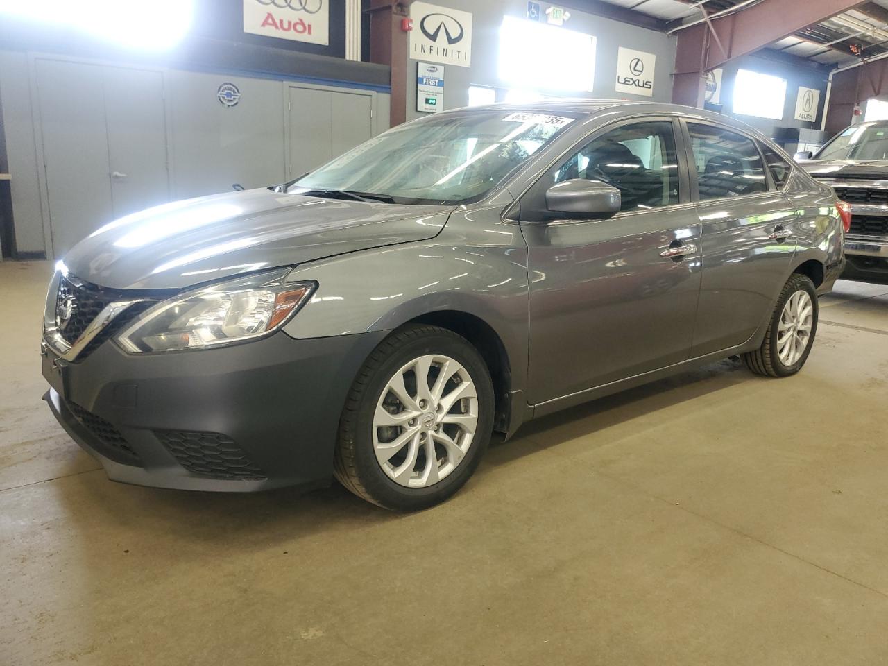 FairThis is a 2019 Nissan Sentra S, a gray sedan with primary front-end and secondary rear-end damage. The vehicle is a Run & Drive Verified, indicating it is drivable despite the damage.