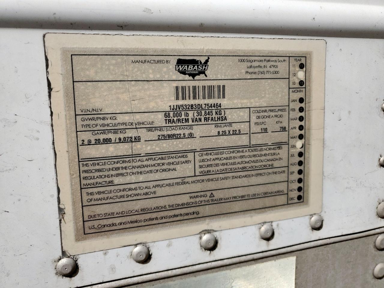GoodThis is a 2013 WABASH TRAILER semi-trailer. The primary damage is all over, with no secondary damage. The color is white. It appears to be in a drivable condition, showing minor to moderate visible damage, potentially requiring replacement of a few elements. The interior shows minor visible damage consistent with age and mileage.