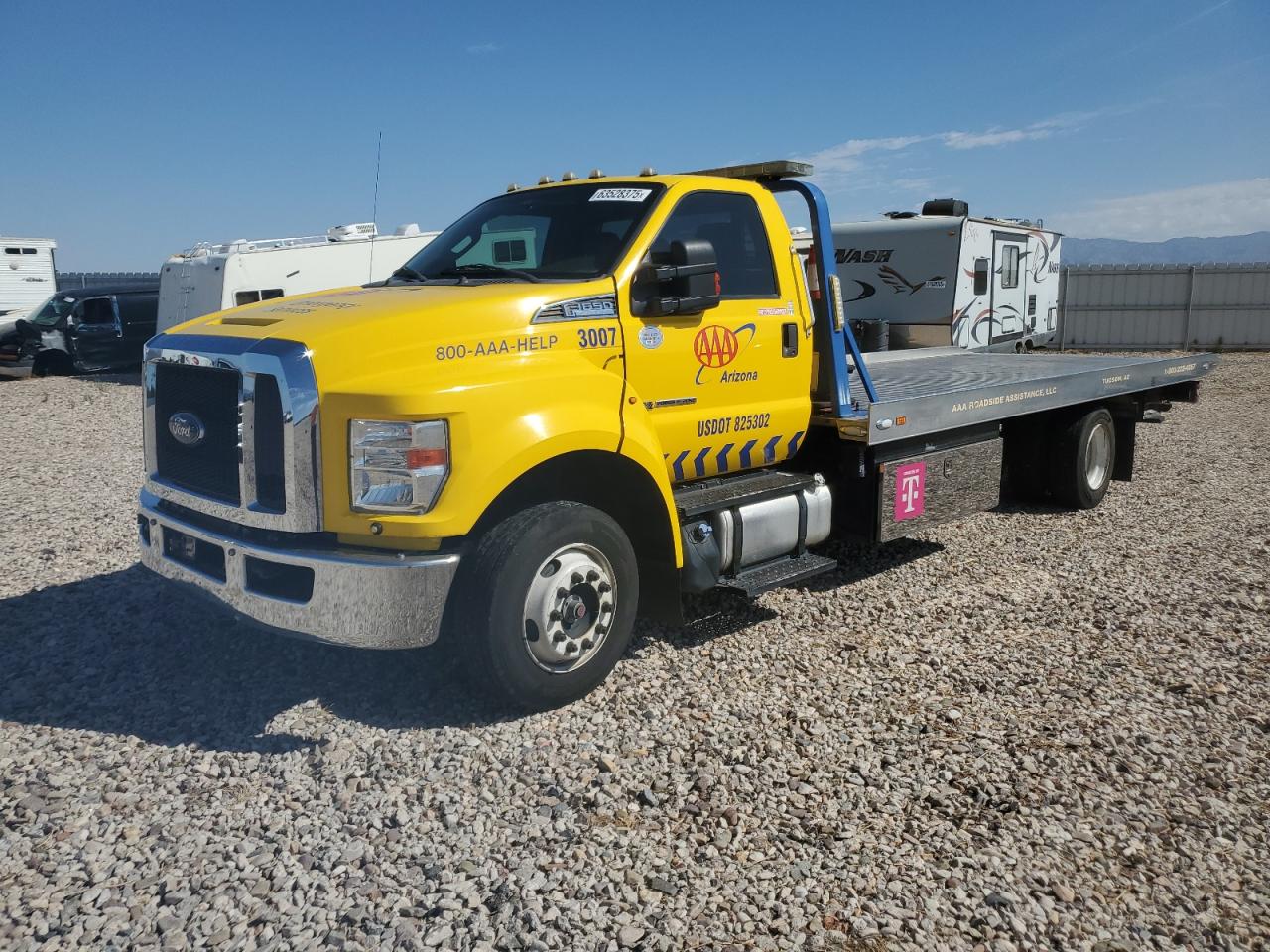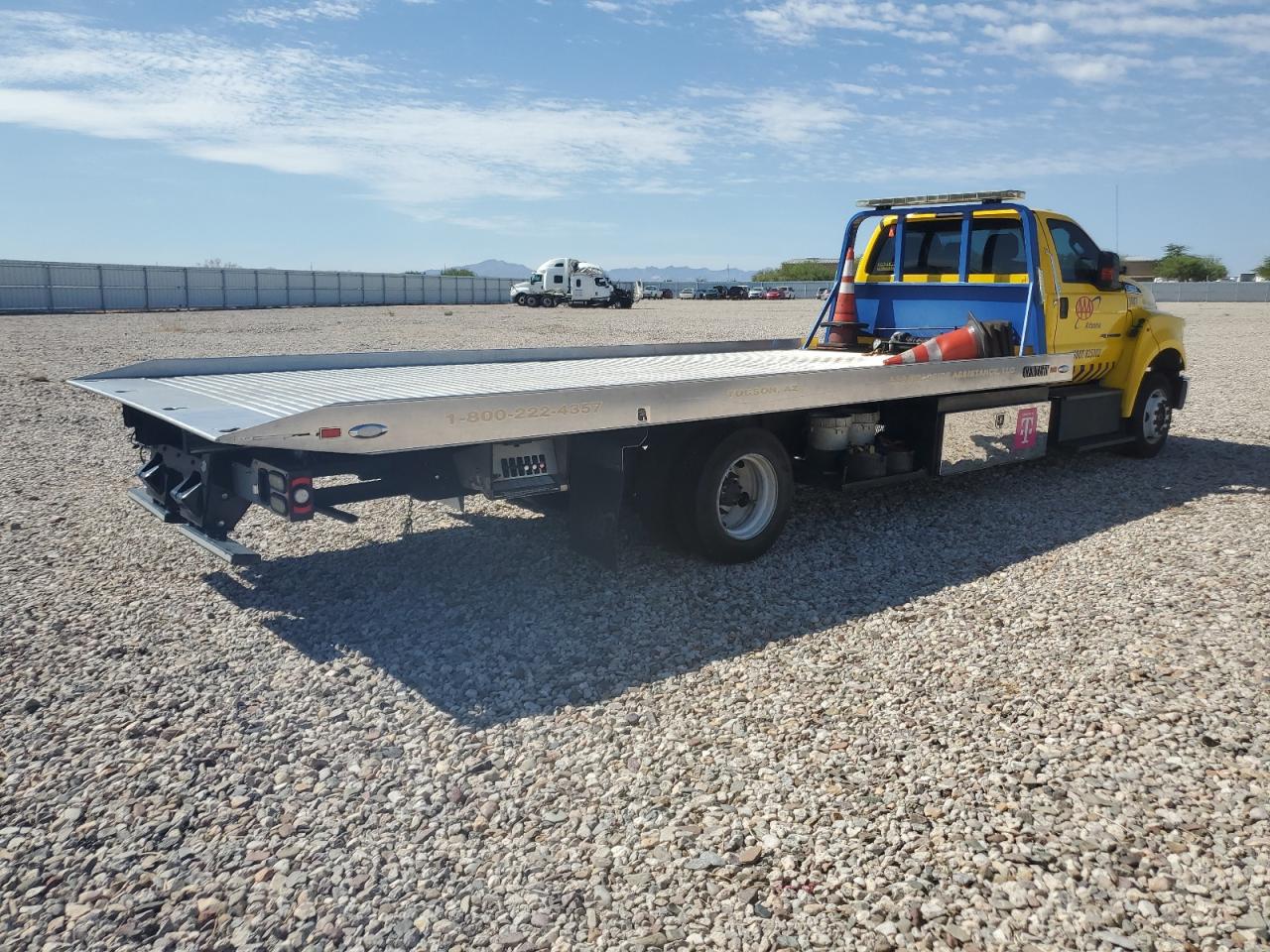 GoodThis FORD F650 SUPER 2018, a yellow tow truck, exhibits minor cosmetic imperfections like dents and scratches. The vehicle starts and runs. No significant damage to the wheels, lights, or glasses is apparent. The interior shows signs of normal wear and tear, with no noted airbag deployment. The vehicle has a body damage category.
