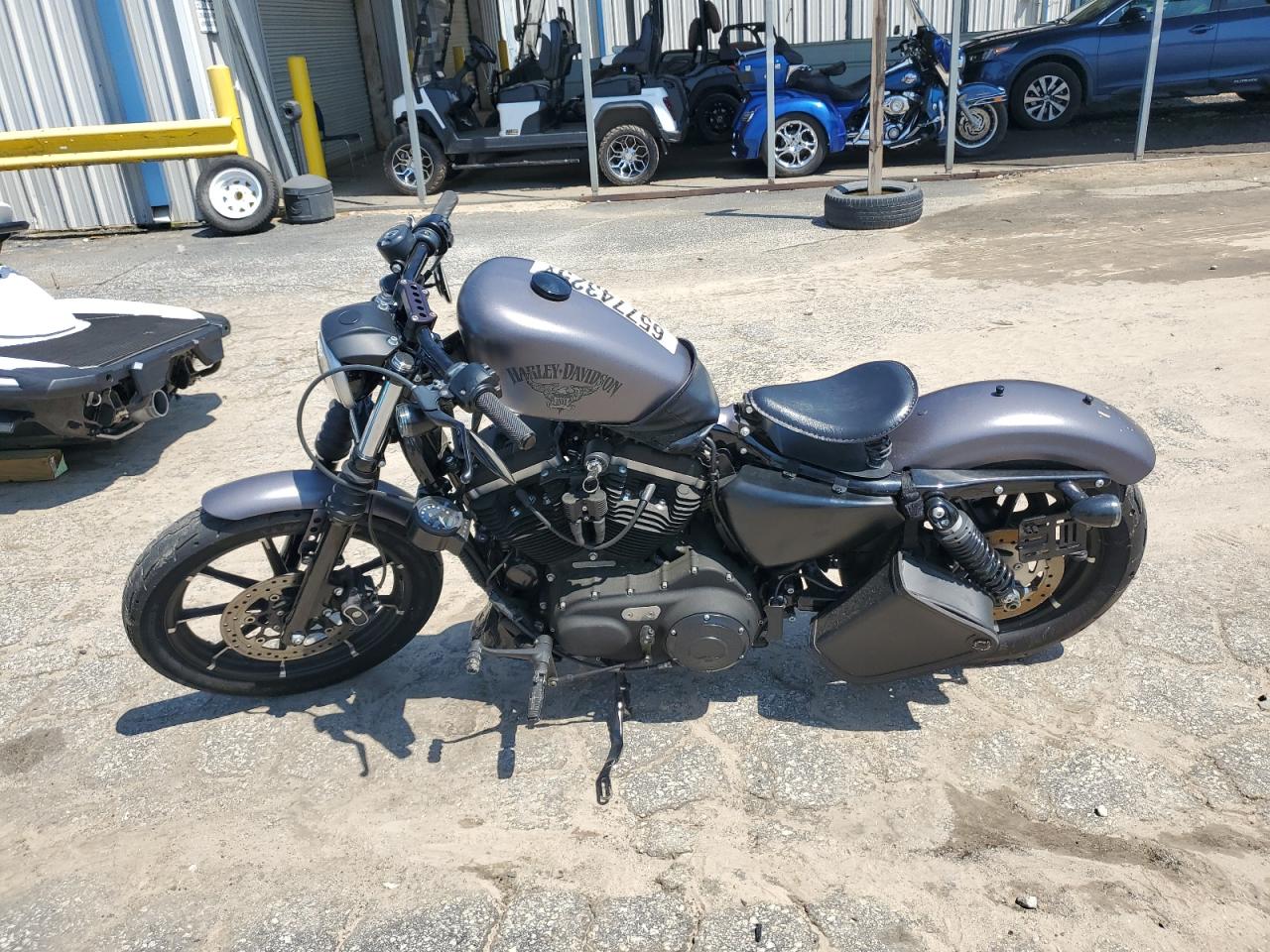 GoodThe HARLEY-DAVIDSON XL883 IRON 2016, finished in black, shows front-end damage. The motorcycle appears to be in running condition. The lights and glasses appear to be in good condition. The interior seems to be well-maintained with no apparent damage.