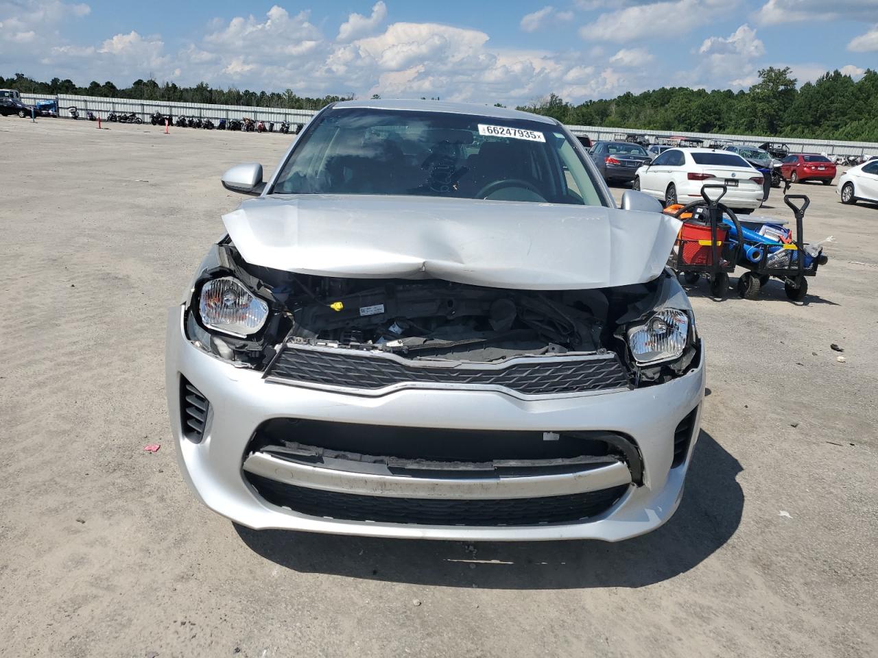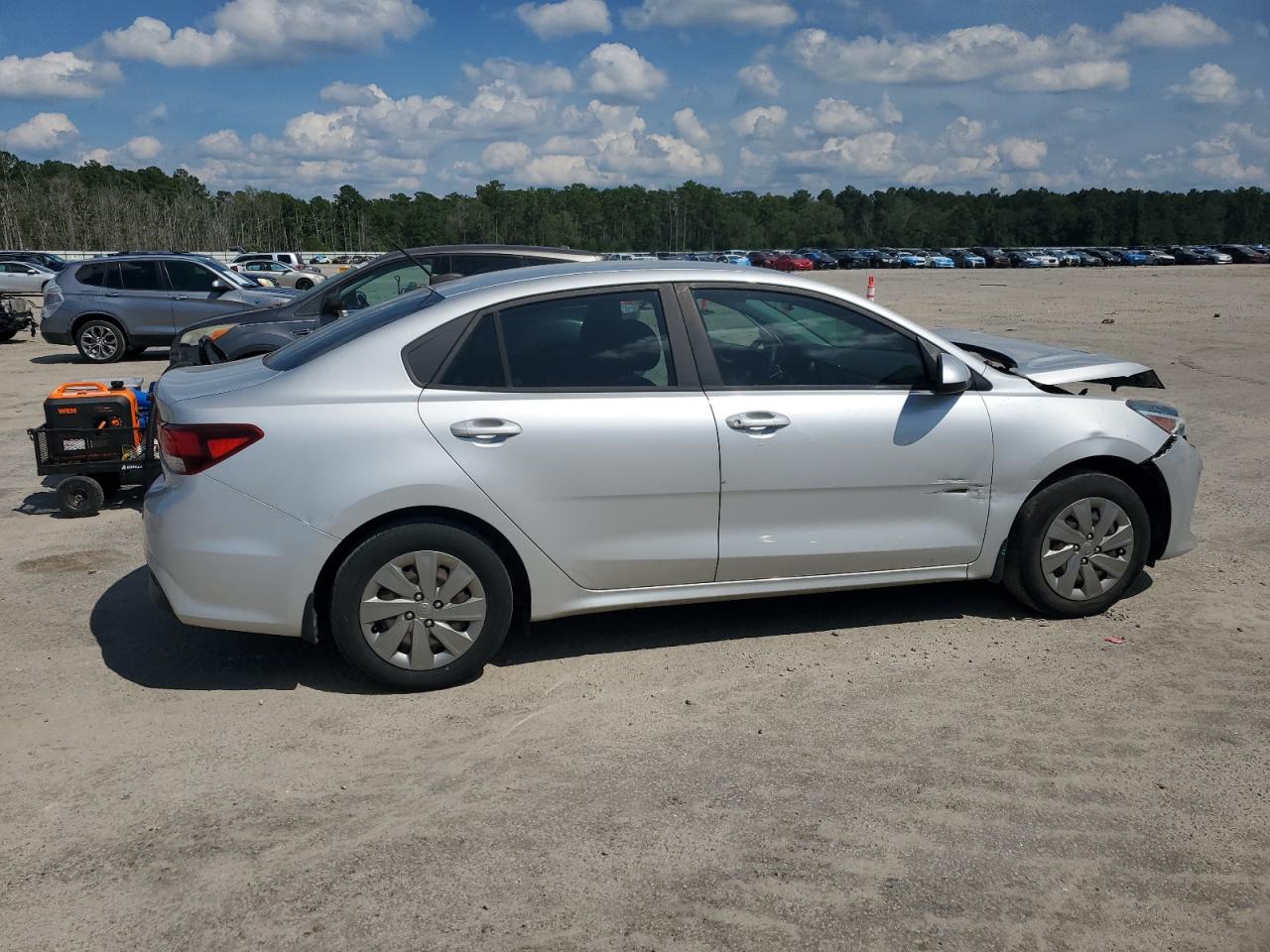 Fair2020 KIA RIO LX with front-end damage, silver color. Run & Drive Verified. Exterior has moderate damage, interior shows minor wear. Vehicle Damage Category: Body. Overall Condition: Fair.