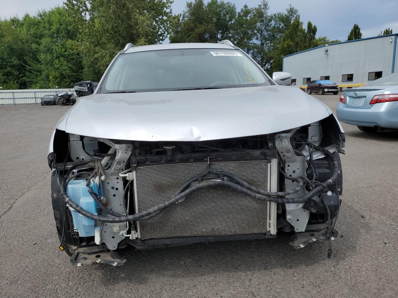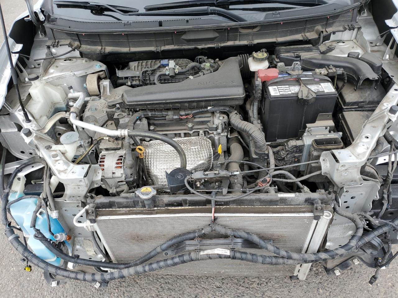 GoodThe 2017 NISSAN ROGUE S is silver. It has front-end damage, with the front bumper and some body panels affected. The wheels appear intact, and the lights and glasses are in good condition. The interior shows minimal wear and tear. The car is listed as 'Run & Drive Verified'.