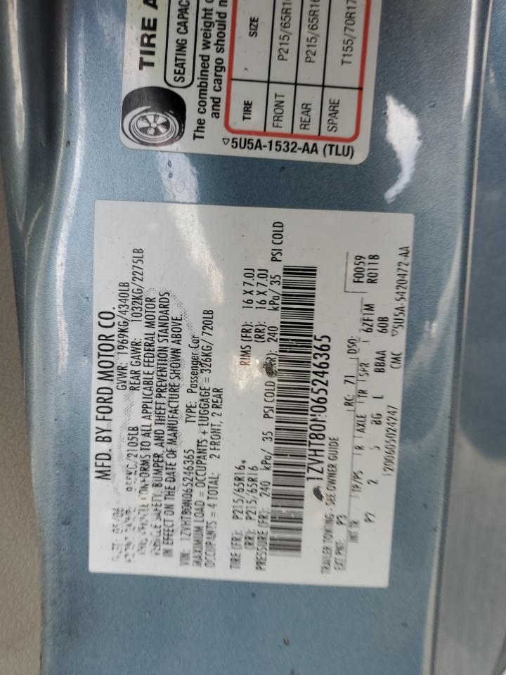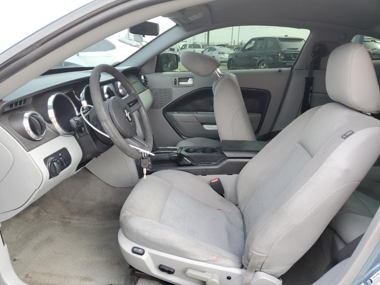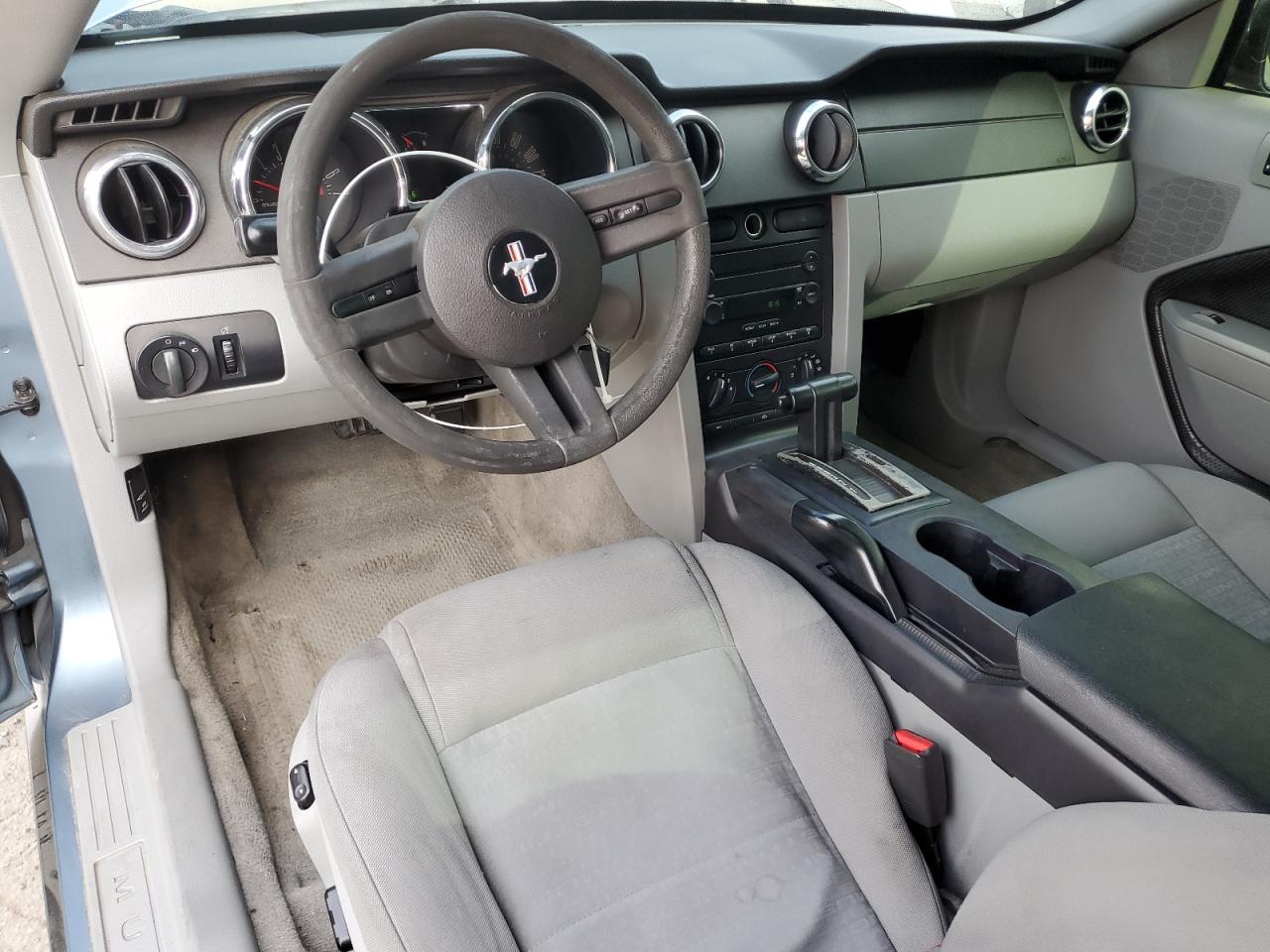 FairThis is a 2006 Ford Mustang, light blue in color. The primary damage is to the rear end, with a significant dent. The secondary damage is not present. The car's lights and glasses appear to be intact, and the black wheels also without visible damage. The interior shows signs of wear consistent with age and mileage. Summary of Damage and Overall State: Damage: Rear-end damage, Body Damage. Overall Condition: Fair Vehicle Damage Category: Body