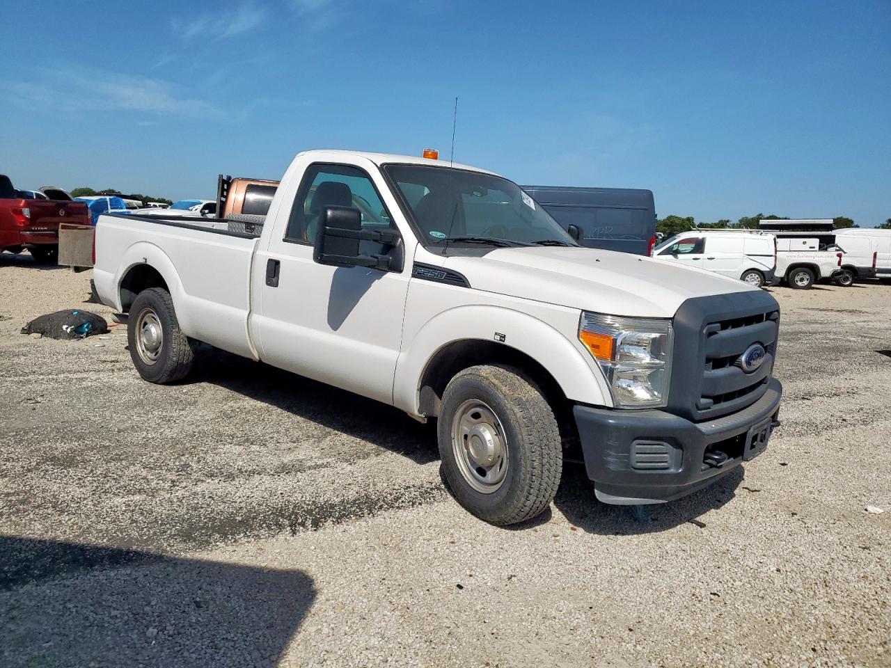 GoodThis is a white 2013 FORD F250 SUPER DUTY truck. It has normal wear and hail damage. The car is running and drivable. The interior shows wear consistent with its age and mileage. The vehicle's lights and glasses appear to be in good condition. The truck starts and runs, verified as 'Run & Drive'.