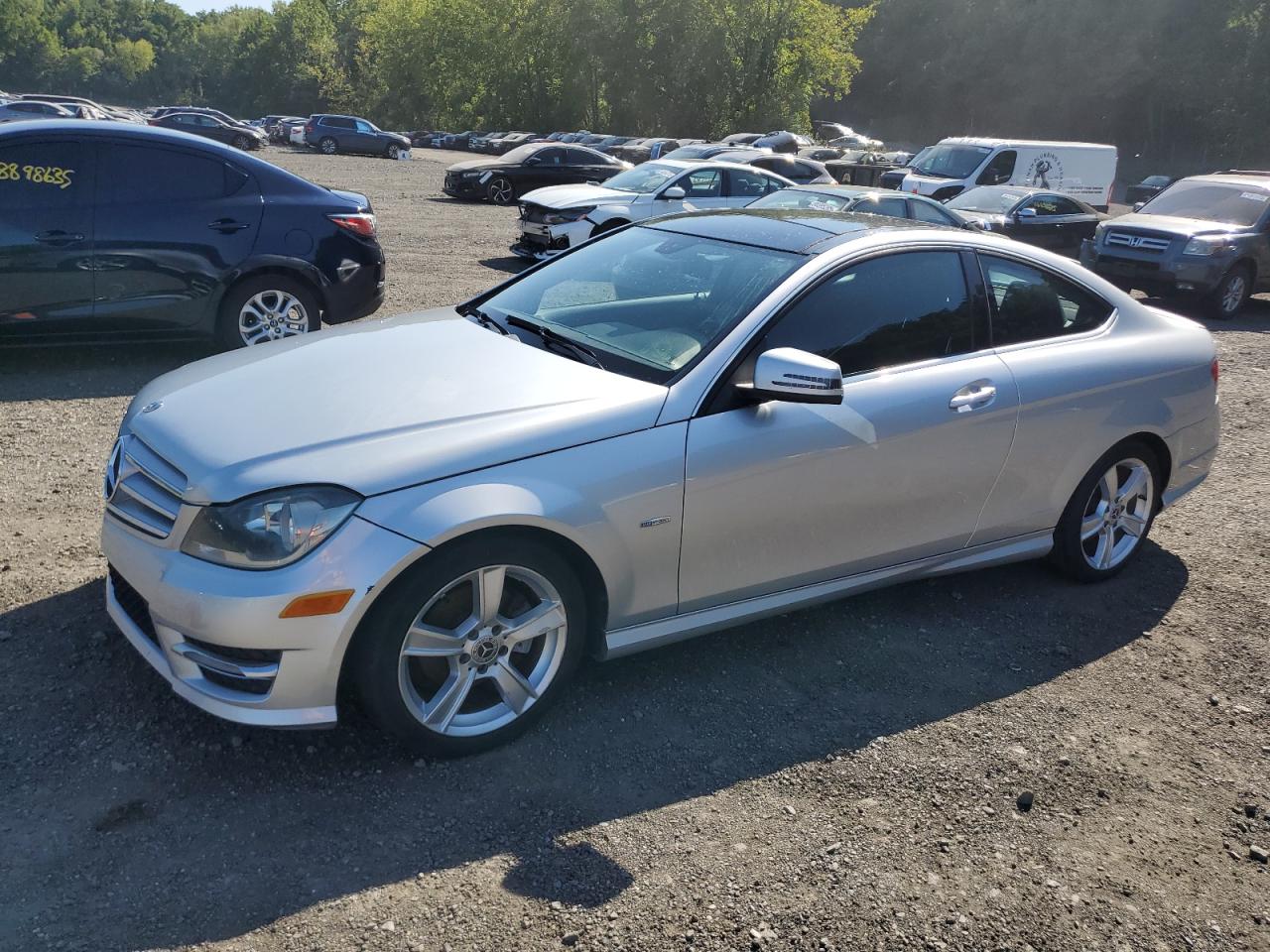 GoodSilver 2012 Mercedes-Benz C 250. The car shows normal wear with some body damage. The vehicle starts. The interior has some visible damage. The wheels and lights appear to be intact.