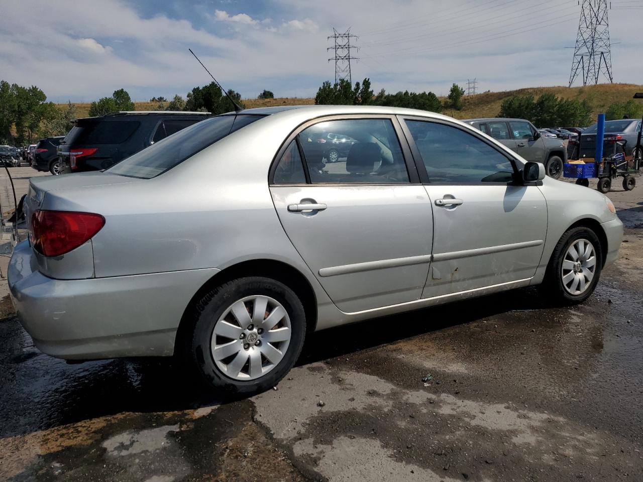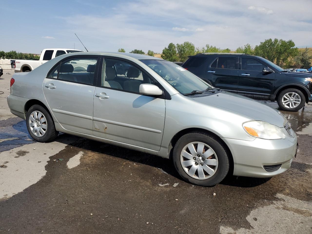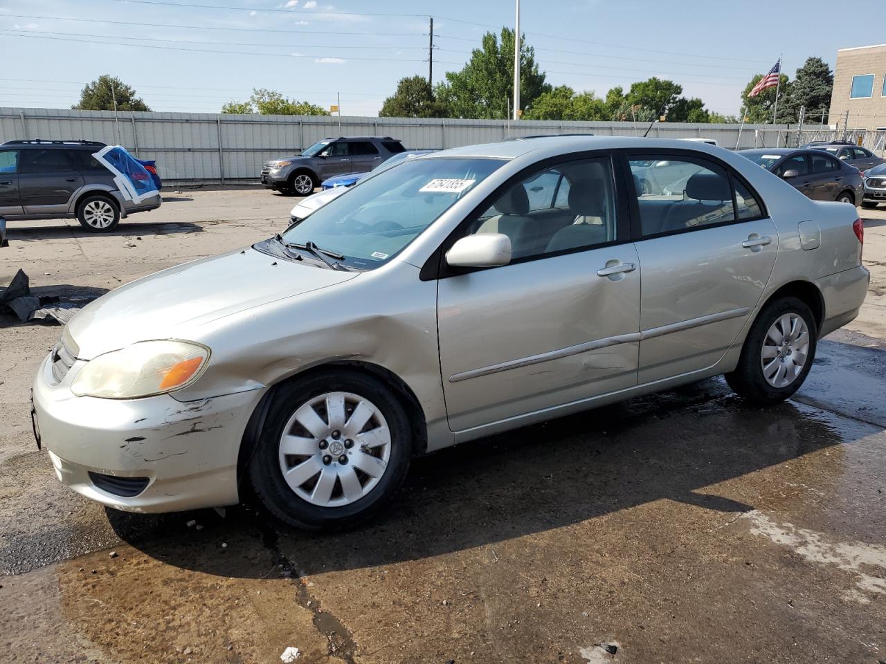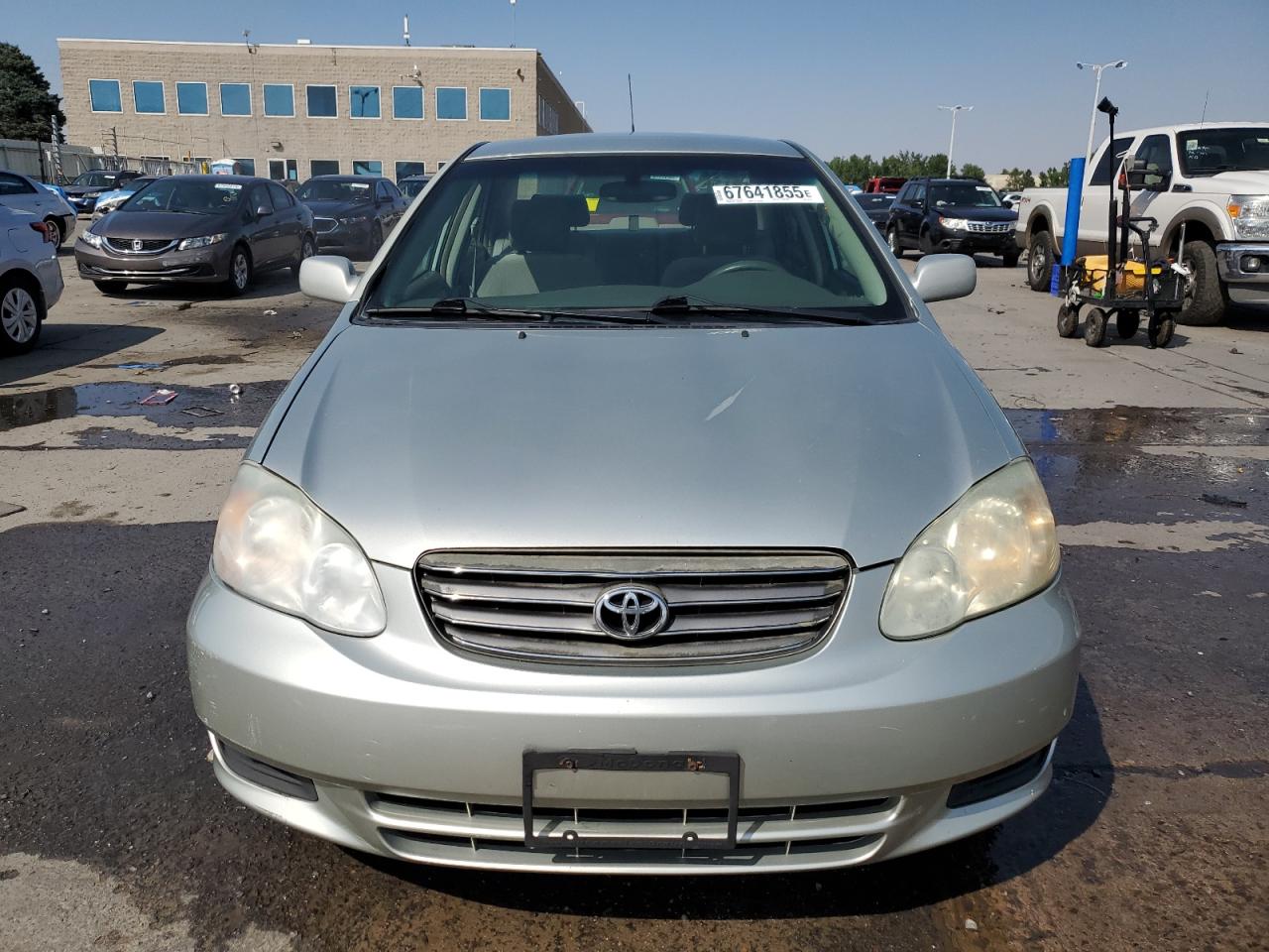 FairThis is a 2003 TOYOTA COROLLA CE, silver in color, confirmed to Run & Drive. The vehicle's primary damage is to the FRONT END, with secondary HAIL damage. Despite the damage, the car appears drivable, and the interior shows signs of wear but is generally in good condition. The wheels and lights are functional, and the glass is intact.