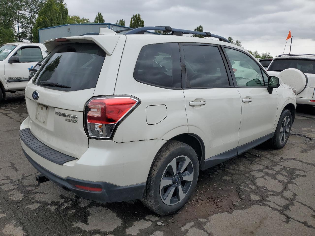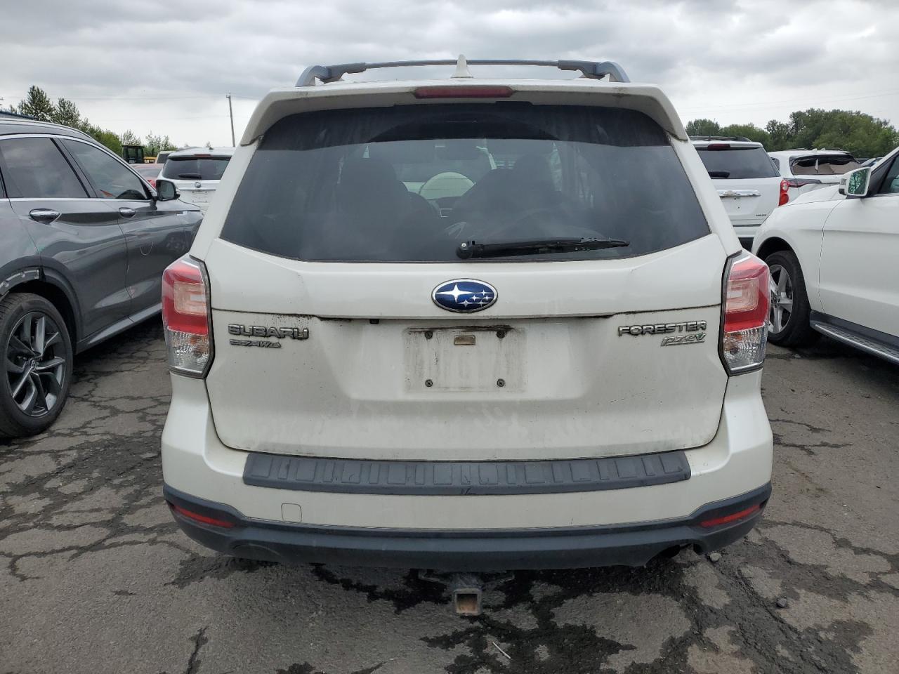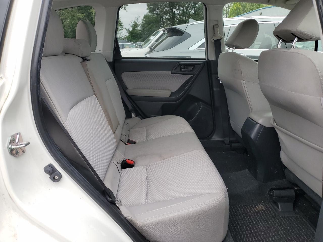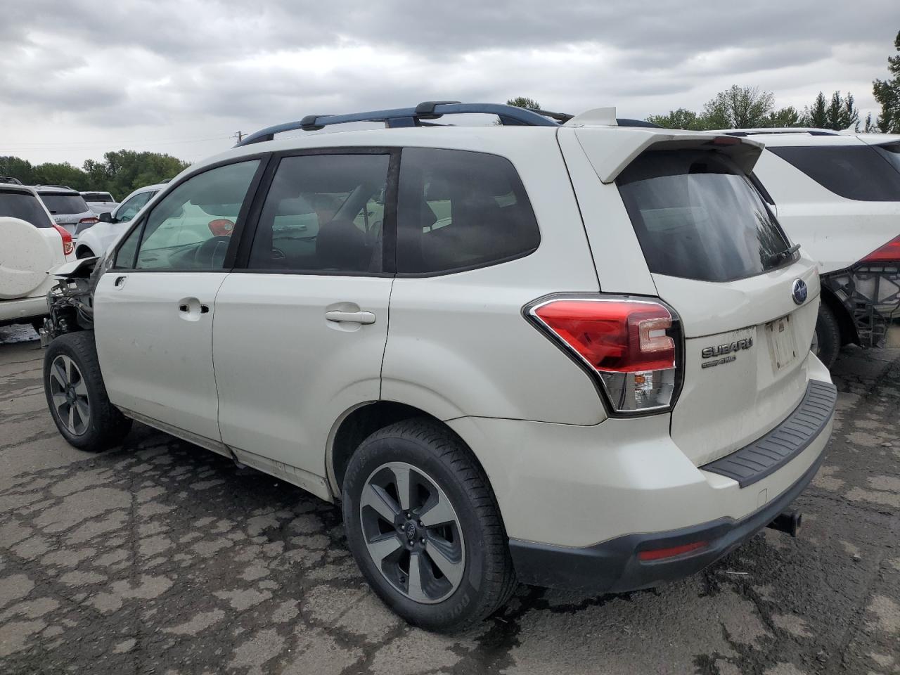Fair2017 SUBARU FORESTER 2 with front-end damage. Vehicle is white with run and drive verification. The vehicle exhibits significant front-end damage, including the absence of the front bumper, lights, and significant body panel damage. The wheels appear intact. The interior shows signs of wear consistent with its age and mileage, but it's in good shape.