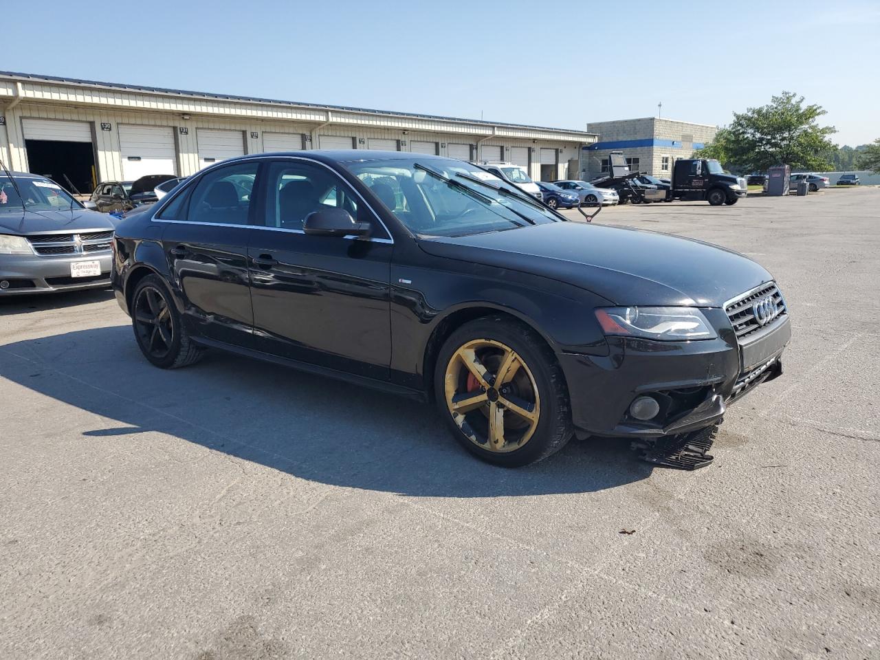 Fair2012 AUDI A4 PREMIUM PLUS, black color. Primary damage: FRONT END, secondary: no damage. Vehicle Damage Category: Body. Start code: Run & Drive Verified. The car has suffered front-end damage. Interior damage includes deployed airbags. The wheels appear to be in good condition, and the lights and glasses are intact. The car is drivable despite the damage.