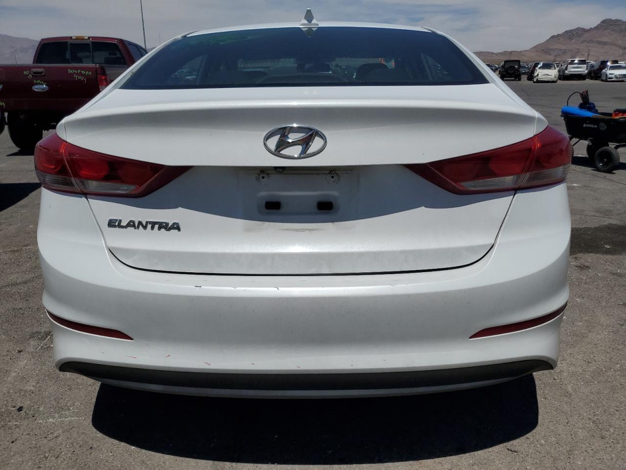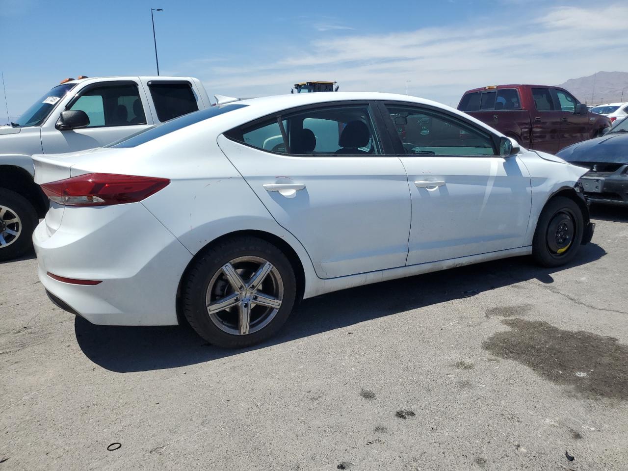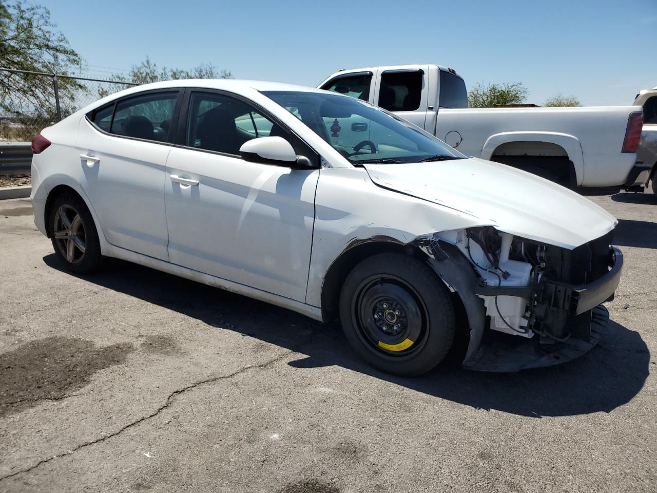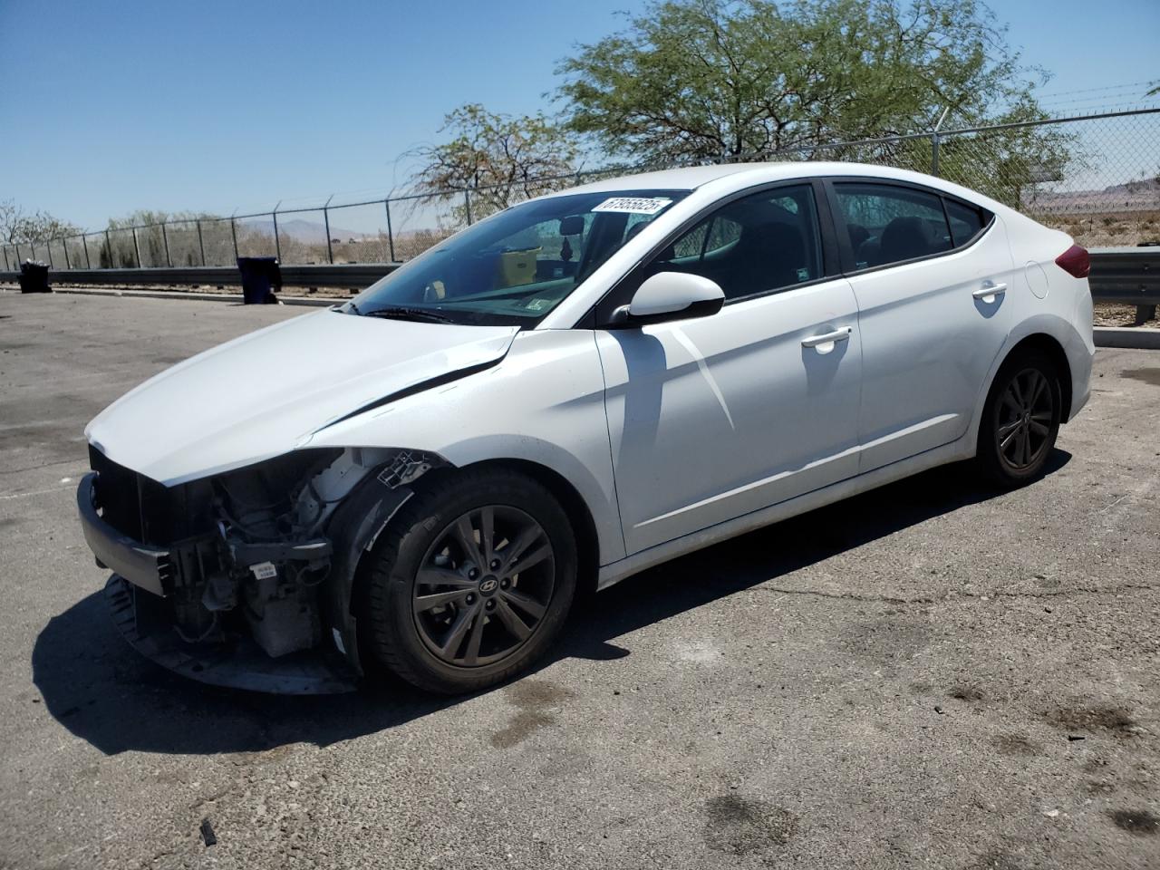 FairThe 2018 HYUNDAI ELANTRA SE, a white sedan, exhibits front-end damage, categorized as Body. The front of the car shows significant damage, with the bumper, fenders, and possibly other components missing or severely damaged. The wheels appear to be intact, and the lights and glasses are in good condition. The interior appears well-maintained, with minimal wear and tear. The car is listed as 'Run & Drive Verified.' The overall condition of the car is 'Fair'.