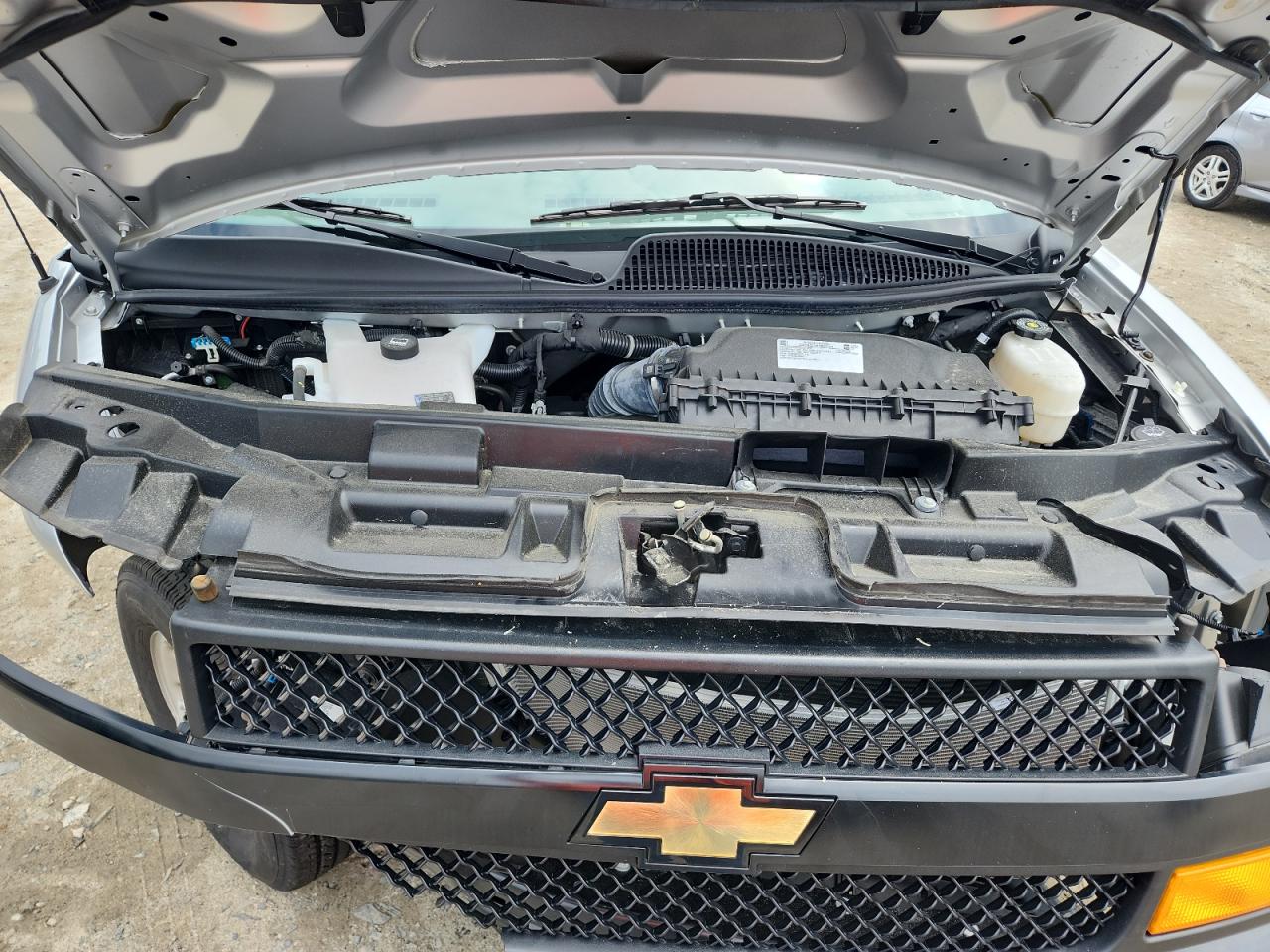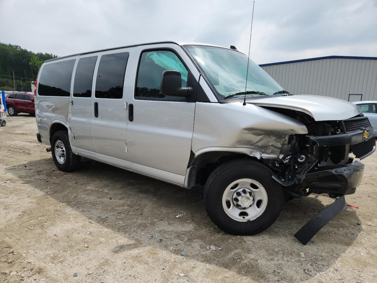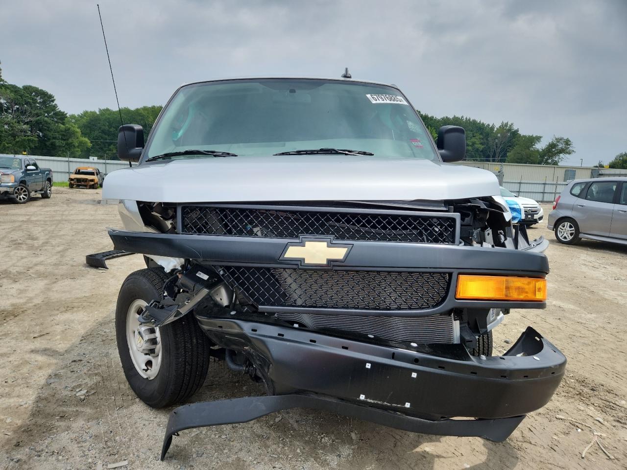 The CHEVROLET EXPRESS G2 2024 exhibits significant damage to the front end and side. The front end damage includes severe damage to the bumper and surrounding components. Side damage is also evident. The interior shows signs of use and wear.