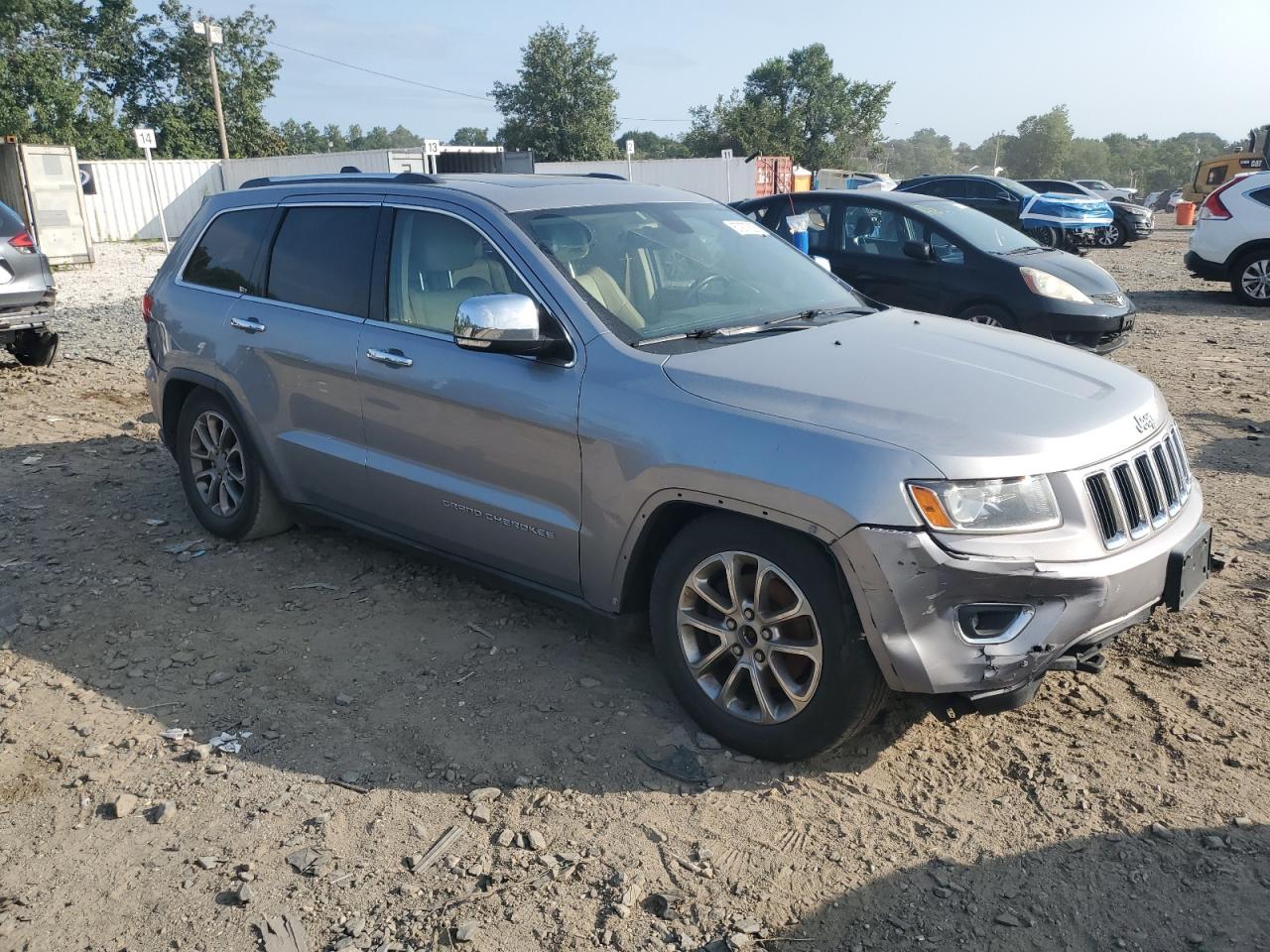 FairThe 2014 Jeep Grand Cherokee presents with damage to both the front and rear ends. The vehicle's silver exterior shows signs of wear, and the overall condition suggests a need for repairs. The interior appears to be in relatively good condition. The car itself is a popular SUV known for its blend of on-road comfort and off-road capability.