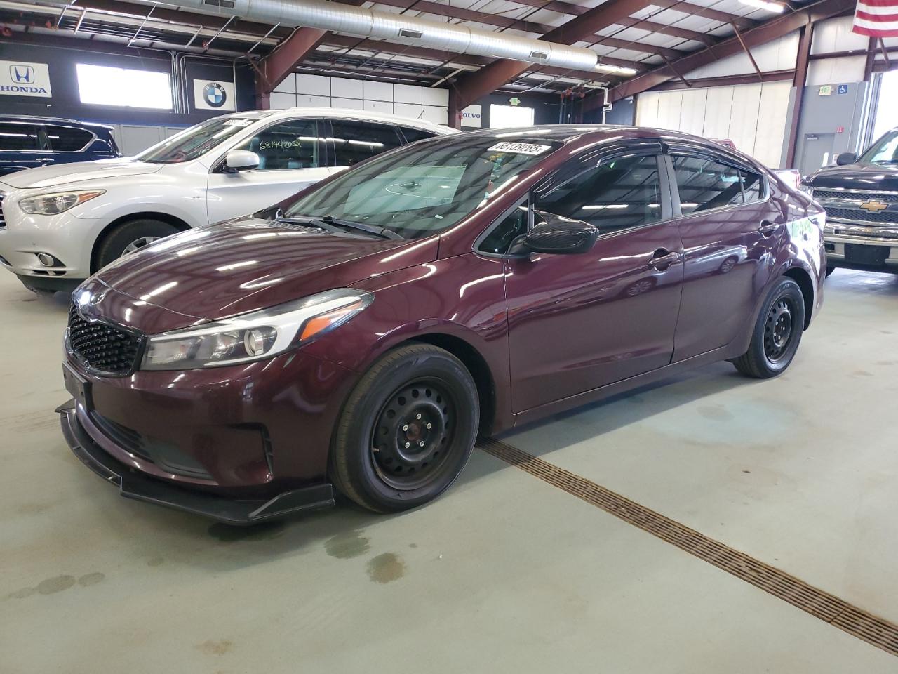 GoodThis is a 2017 KIA FORTE LX, presented in a striking purple color. It has a Run & Drive Verified status. The car shows minor dent/scratches, classified as cosmetic damage. The wheels, lights, and glasses appear to be in good condition. The vehicle's overall condition is rated as Good. Interior shows some signs of wear and tear.