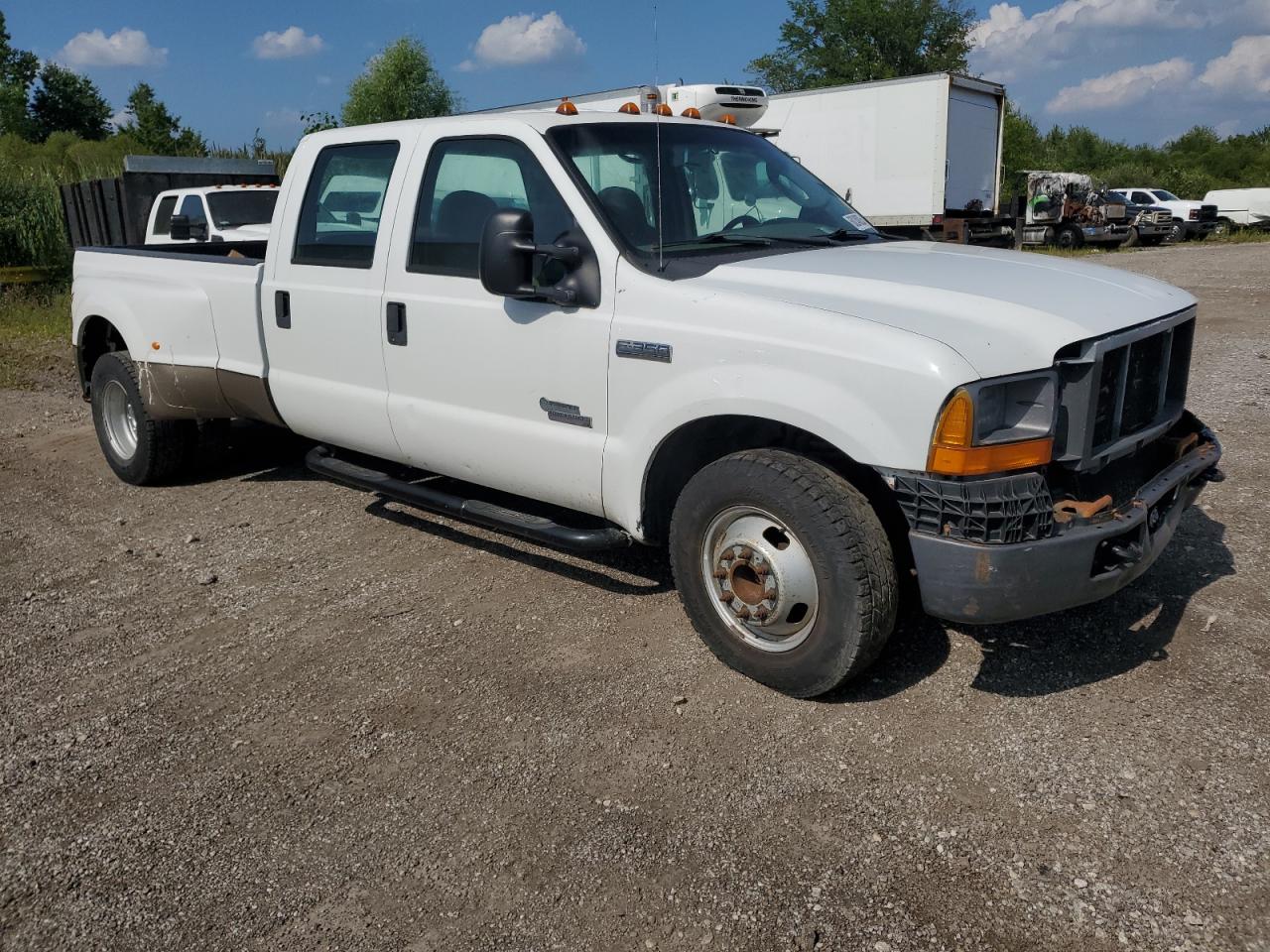 FairThis is a 2005 Ford F350 Super Duty, showcasing both vandalism and front-end damage. The exterior is white, with visible damage across the body panels. The interior shows signs of wear and tear. The vehicle's lights and glasses appear intact, but the overall condition suggests it requires repair.