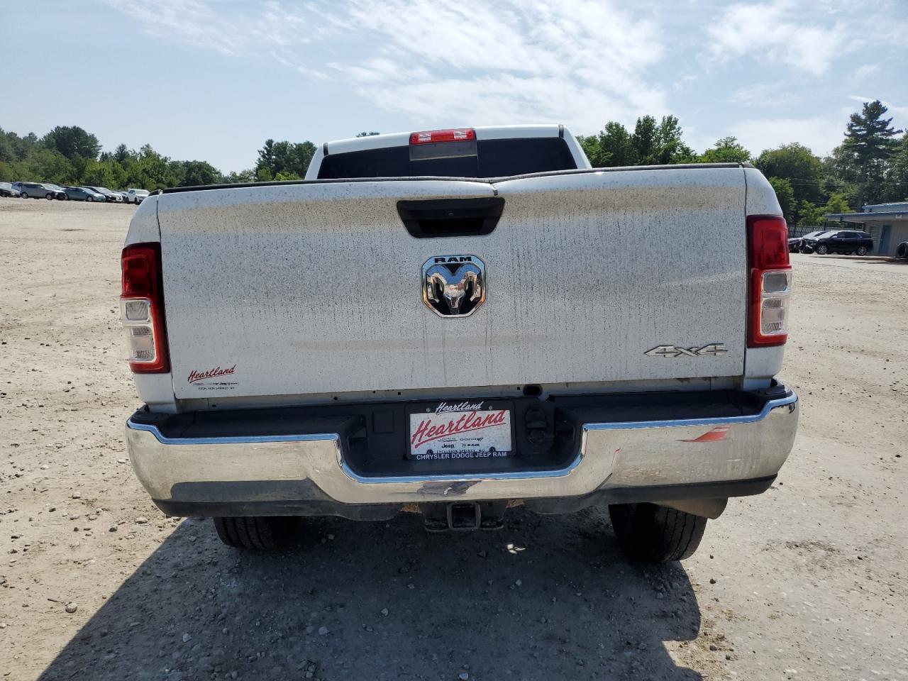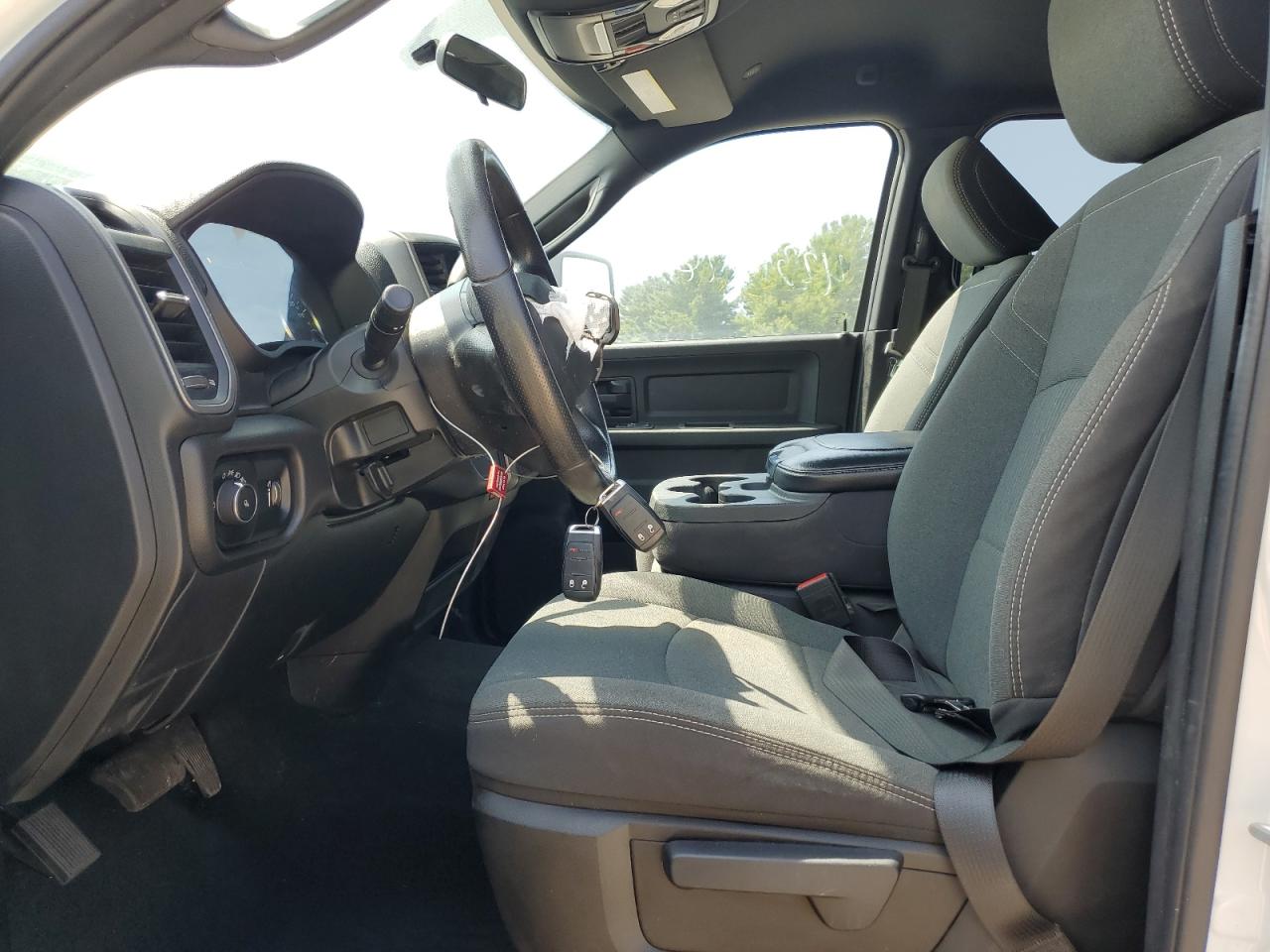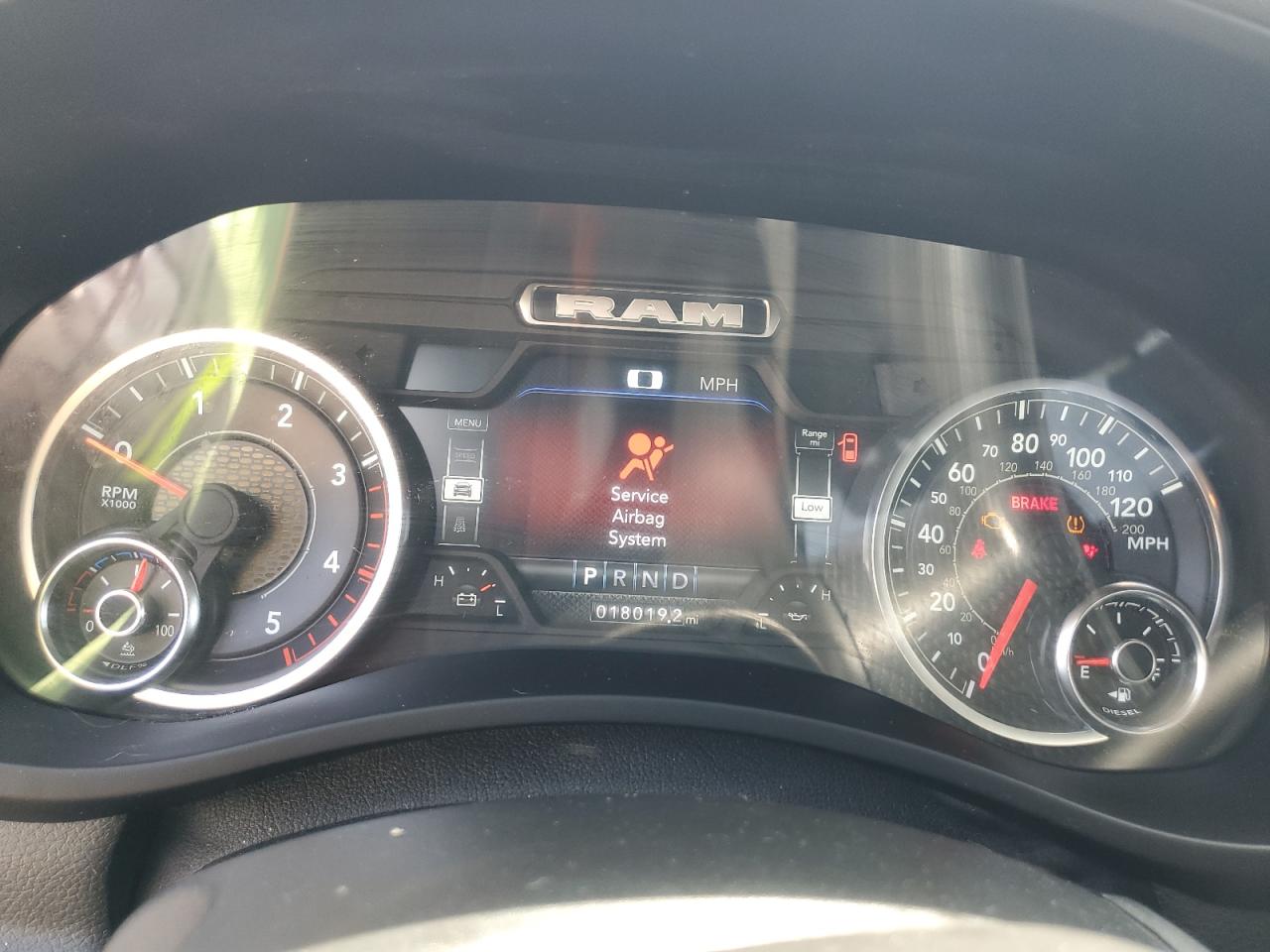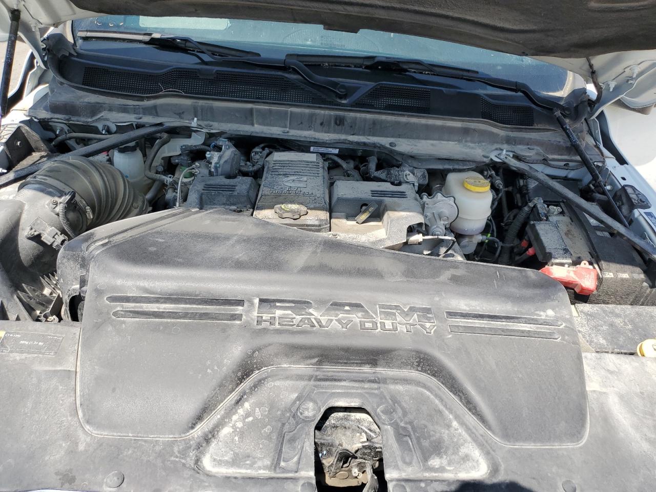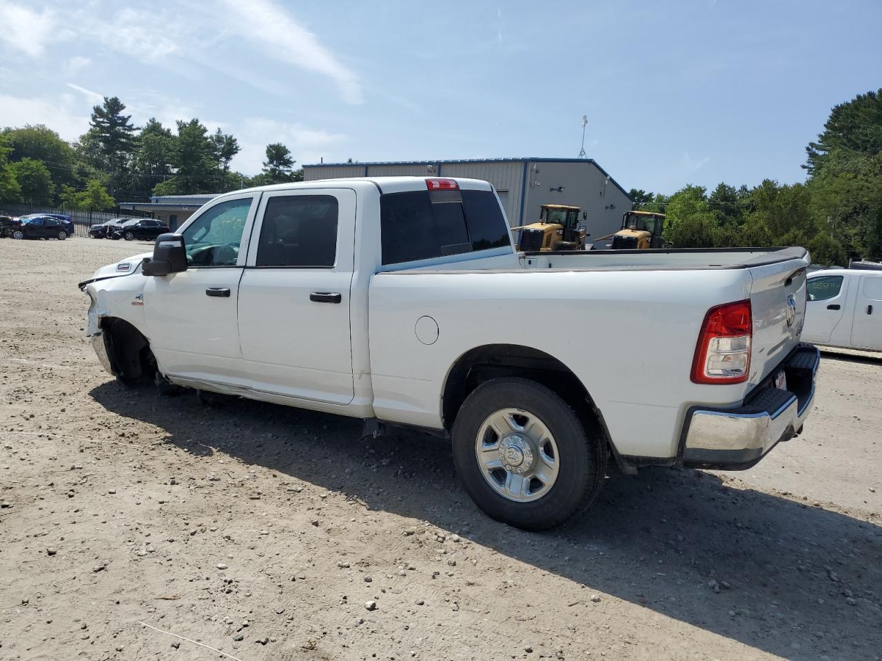 FairThe white 2023 RAM 2500 Tradesman has sustained significant front-end damage. The front of the vehicle, including the bumper, lights, and front panels, exhibits extensive damage. The vehicle's exterior shows signs of wear and tear. The interior appears to be in good condition. The vehicle's overall state is fair, reflecting the need for considerable repairs. The interior shows no signs of airbag deployment.