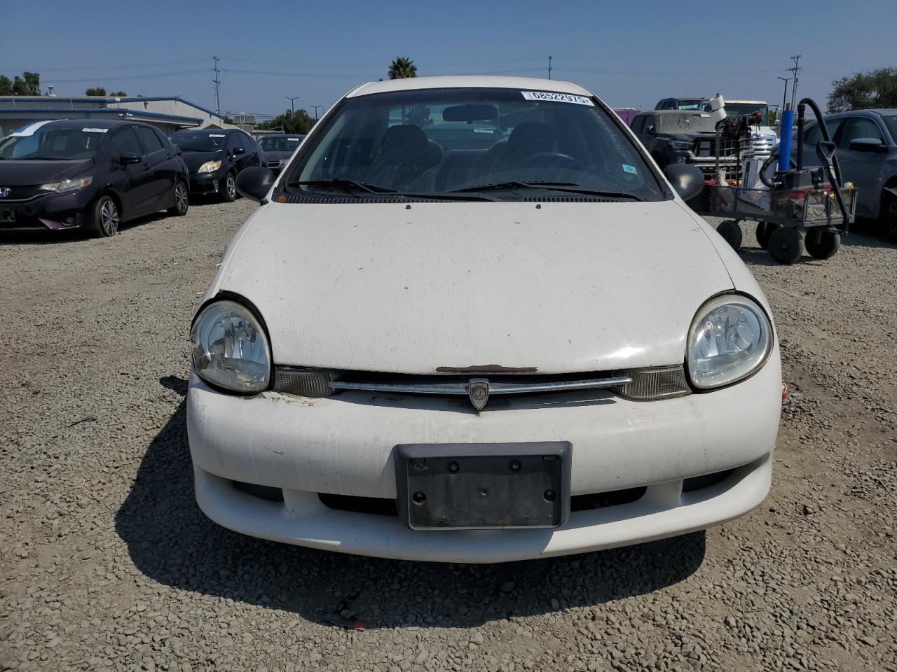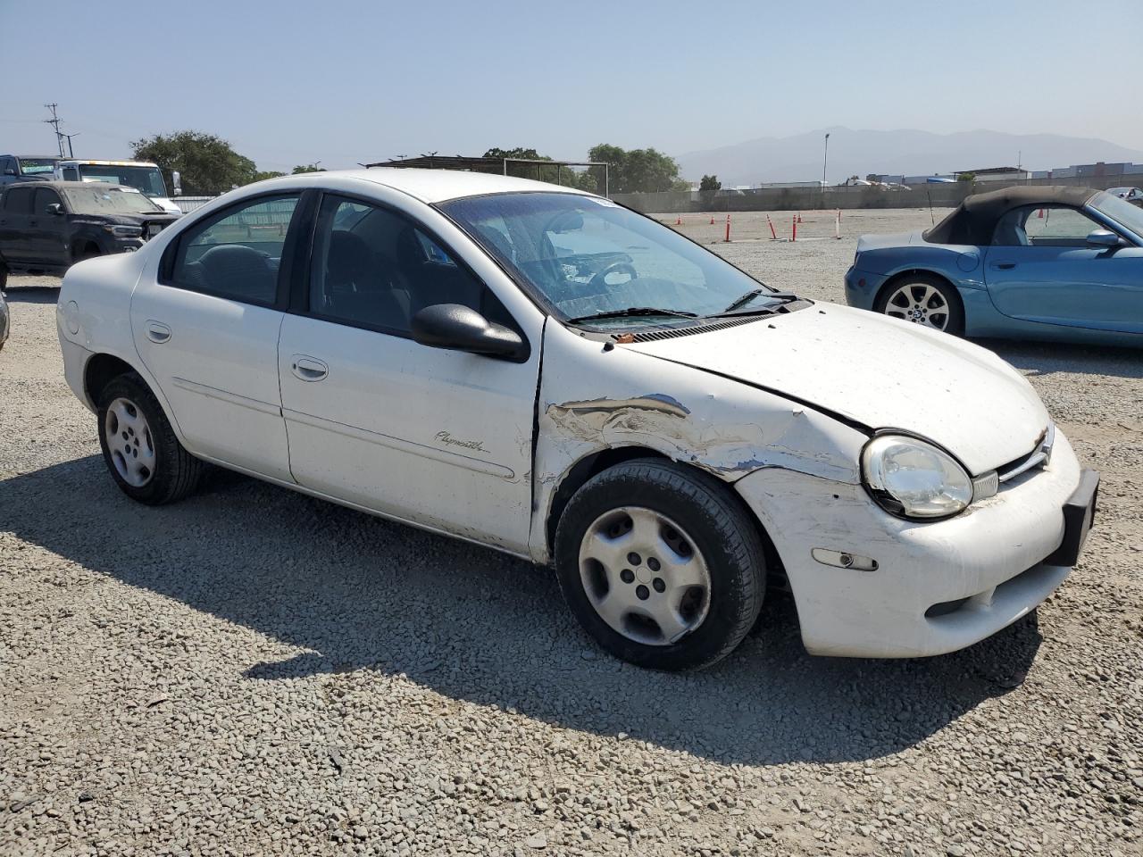 FairThis is a 2001 PLYMOUTH NEON BASE, white in color. The car has front-end damage. It's a run and drive verified vehicle. Overall, the car shows signs of wear and tear consistent with its age. The wheels appear to be in good condition, and the lights and glasses seem intact. The interior shows minor wear.