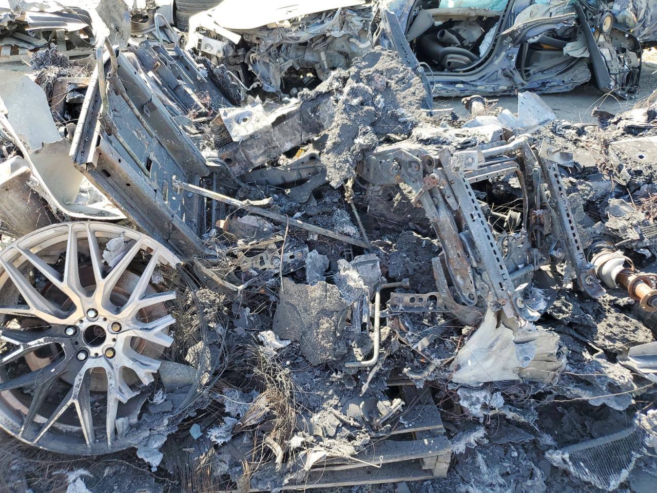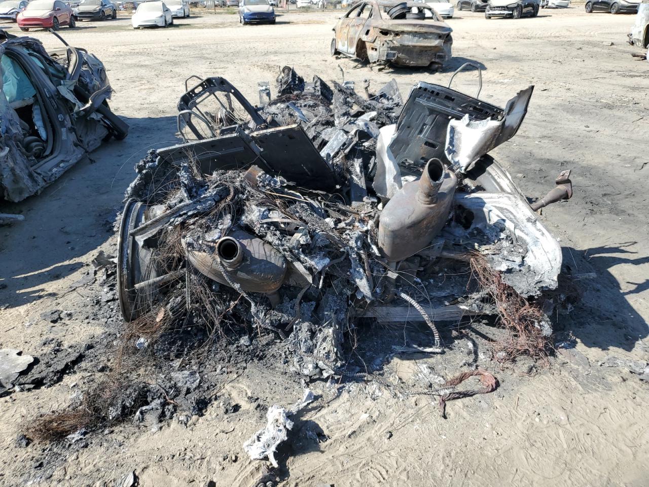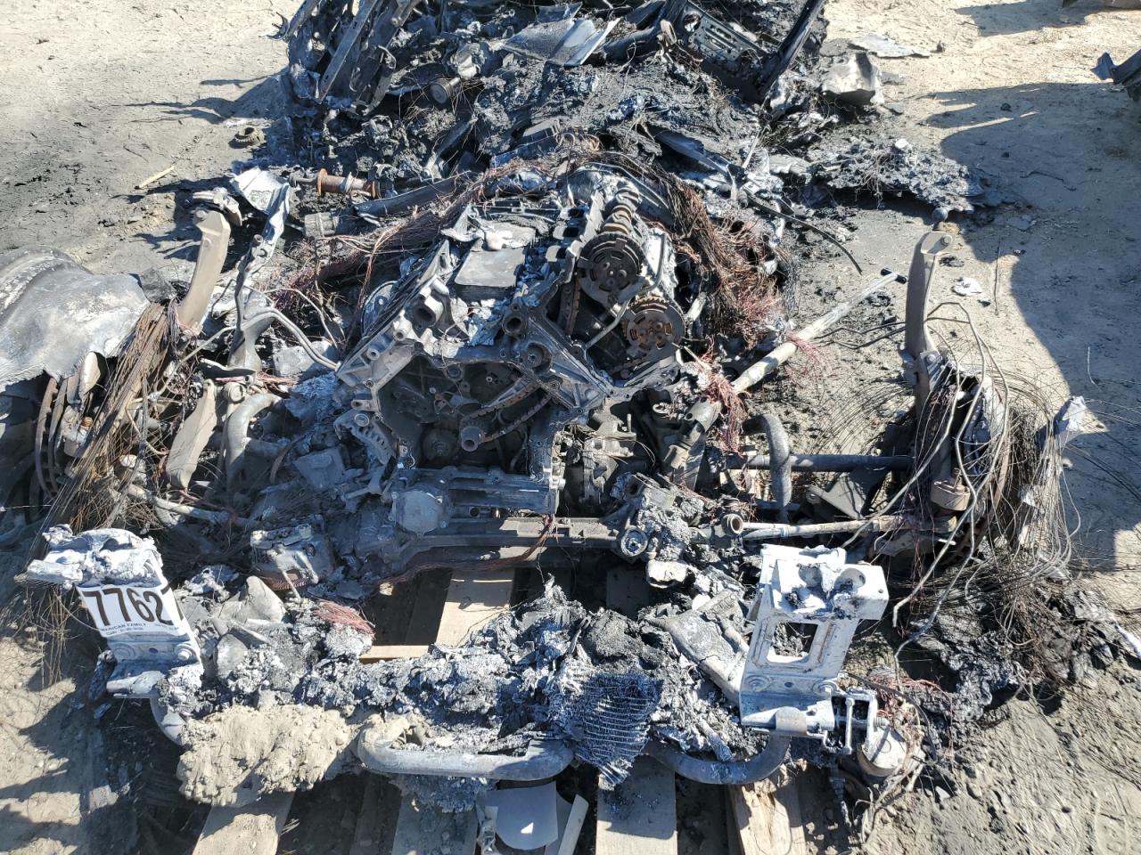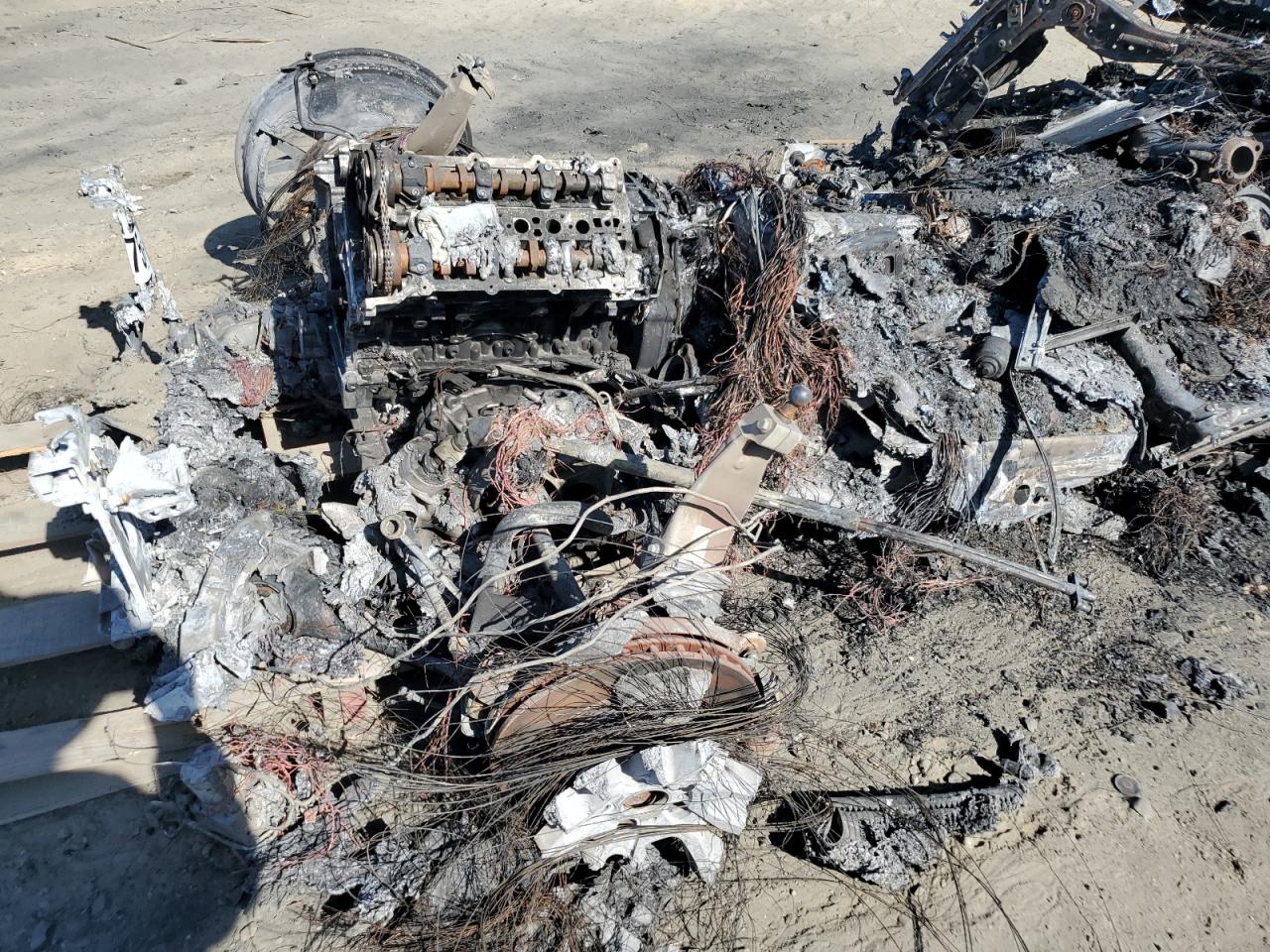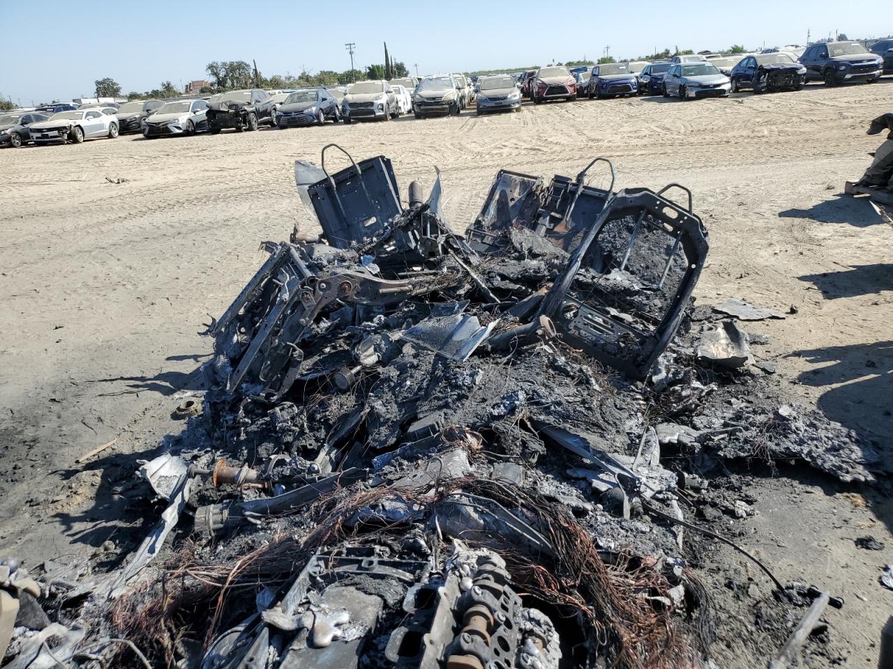 Severe fire damage throughout the vehicle. Body panels, frame, and all components are heavily damaged.