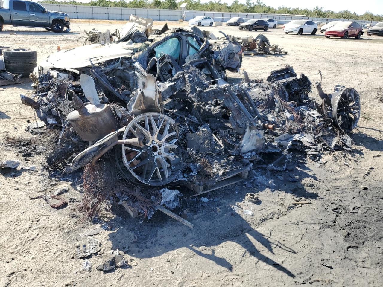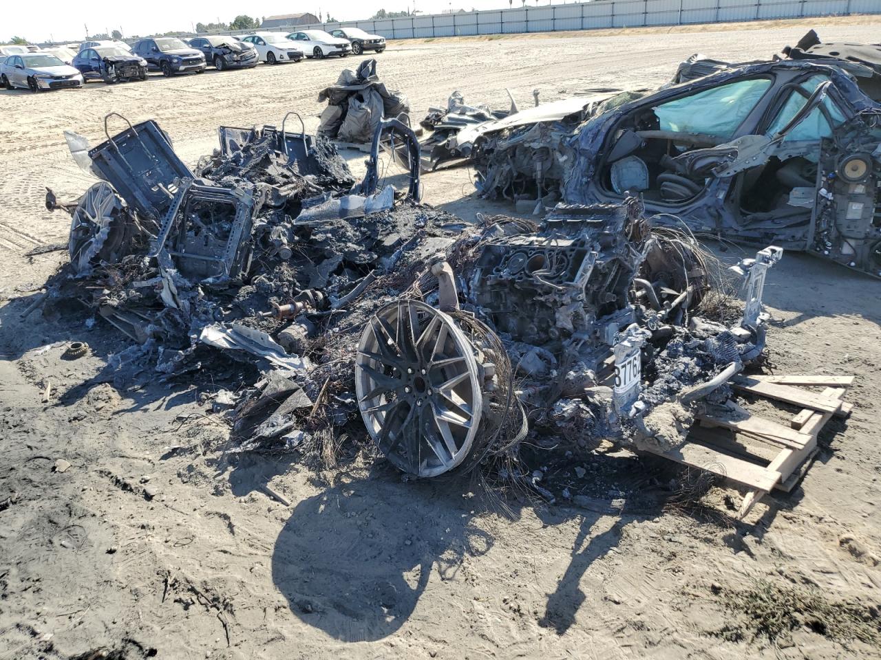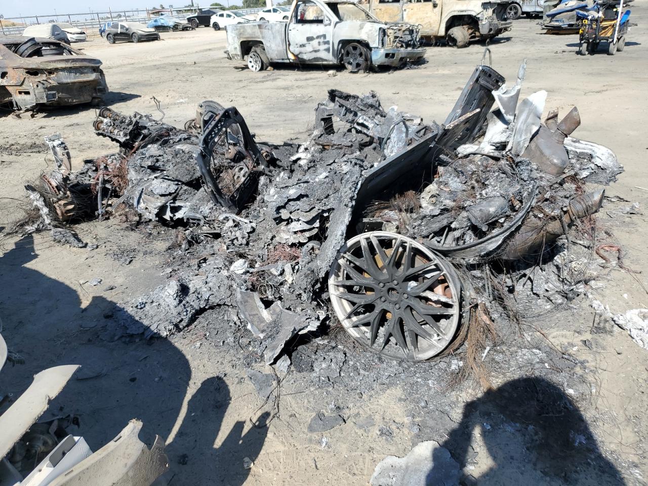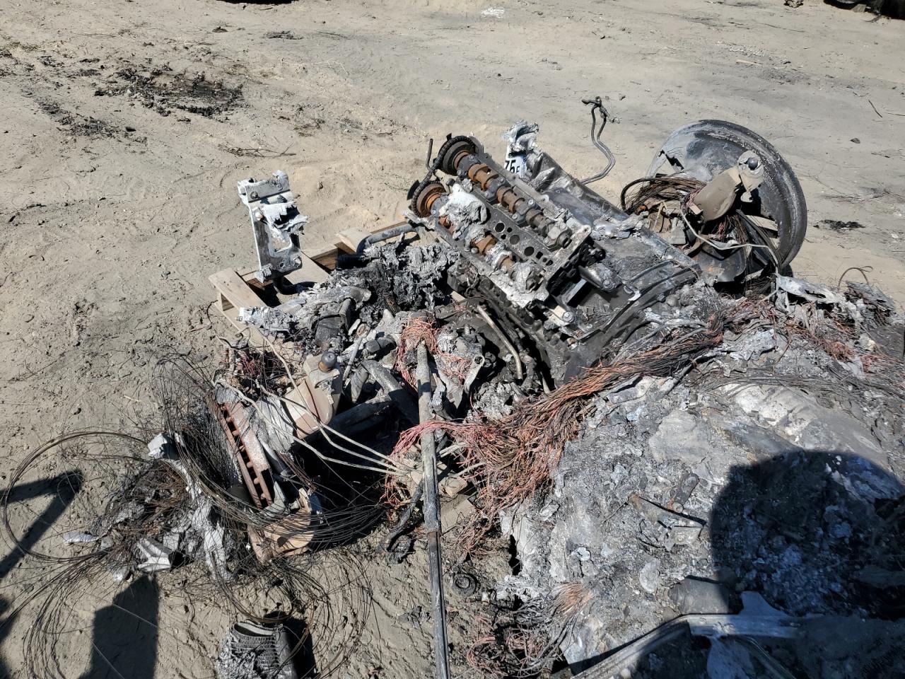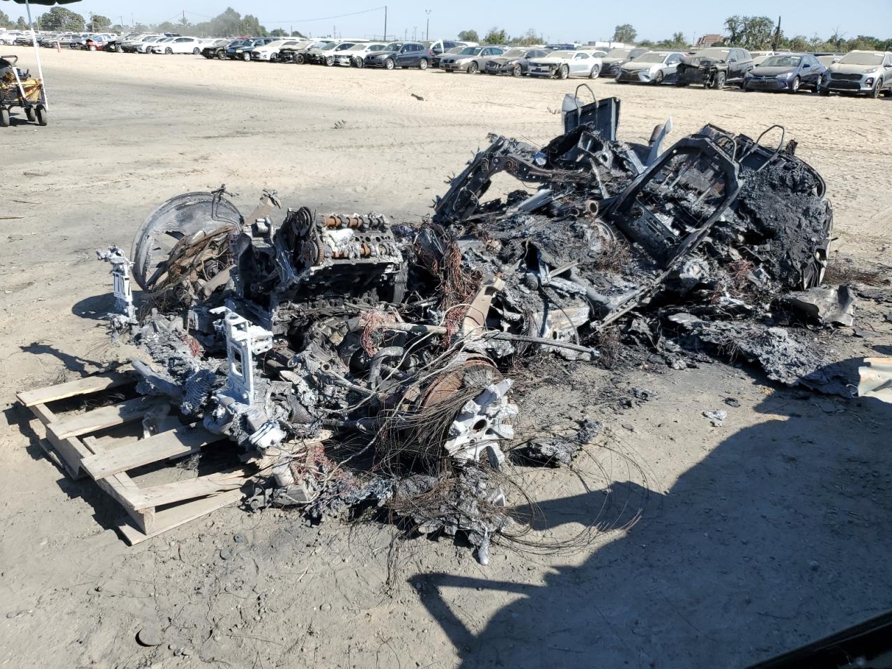 Severe fire damage throughout the vehicle. Body panels, frame, and all components are heavily damaged.