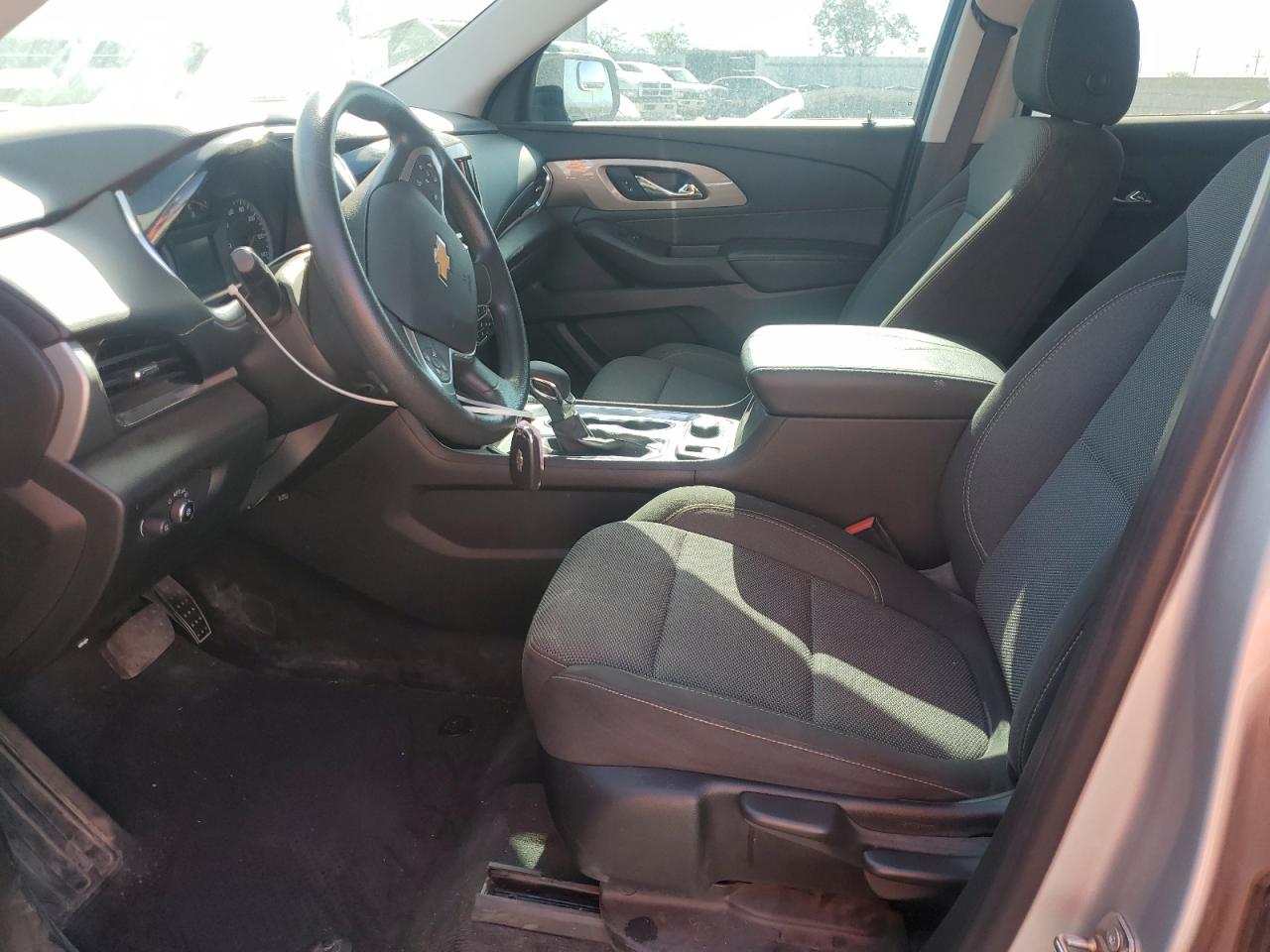 FairThe 2021 CHEVROLET TRAVERSE L in silver has sustained significant damage. The primary damage is rear-end collision with FRAME DAMAGE. The vehicle shows damage to the rear, including the bumper, tailgate, and surrounding body panels, suggesting a substantial impact. The wheels appear intact, and the glass seems to be undamaged. The interior appears to be in relatively good condition. The car is drivable but requires repairs. The vehicle's start code is 'Run & Drive Verified'.