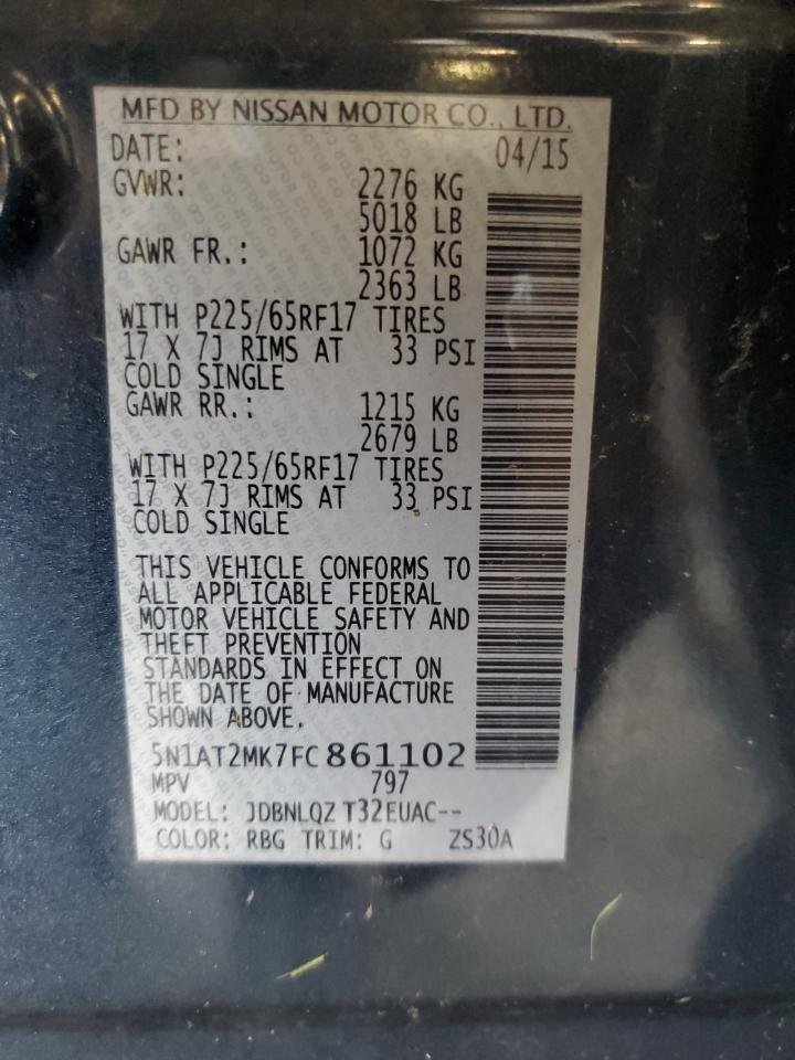 FairThe 2015 Nissan Rogue S, a blue compact SUV, shows visible front-end damage, including a damaged bumper, fenders, and potential headlight damage. The wheels appear intact. The interior shows normal wear and tear. The vehicle's primary damage is to the body, with no indication of mechanical issues. The vehicle may be drivable with repairs. The interior condition is good. The damage is consistent with age and mileage, including the front-end collision.