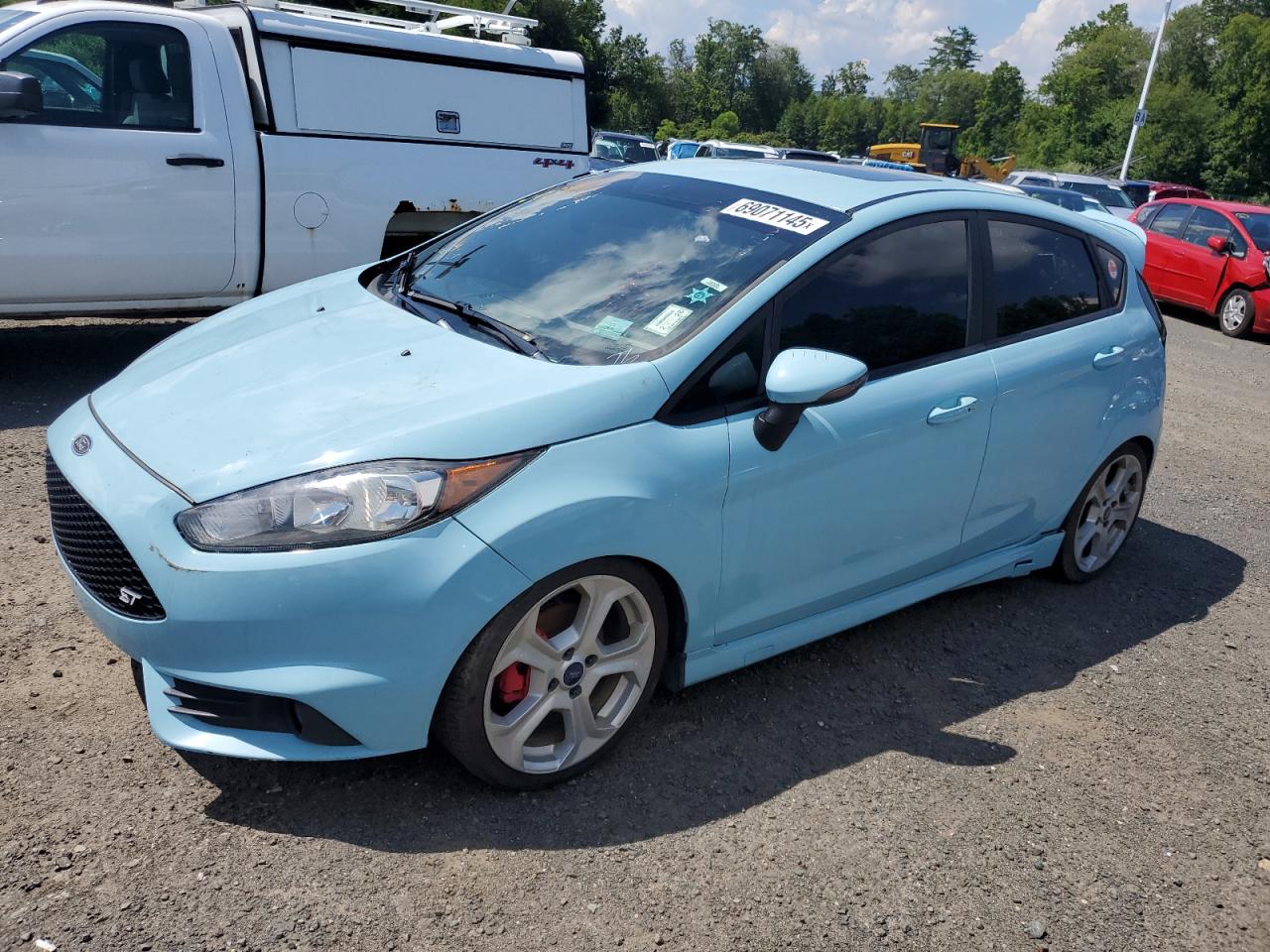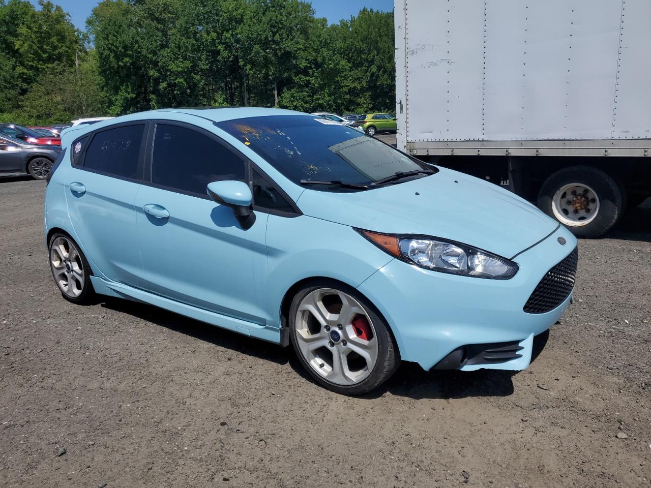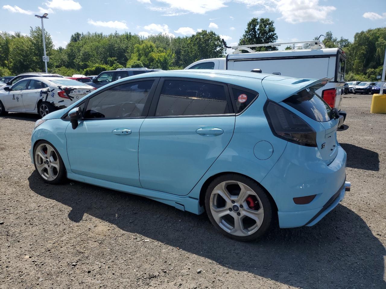 GoodThis is a 2019 Ford Fiesta ST, a compact, sporty hatchback known for its agile handling and fun-to-drive nature. The exterior is finished in a vibrant blue color. The vehicle's appearance suggests it has been well-maintained with some cosmetic imperfections. The interior looks to be in good condition, showing minimal wear and tear, and the car starts indicating that the engine is functioning. The wheels and glasses are in good condition. The vehicle presents as drivable and with some minor cosmetic repairs and improvements. This particular Fiesta ST has a few cosmetic and body imperfections, it starts. The car seems to be in good condition overall.