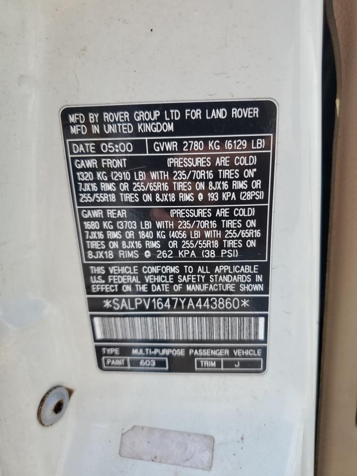 GoodThis is a 2000 Land Rover Range Rover. The vehicle is white and has Run & Drive Verified status. The vehicle's exterior shows normal wear, with no identified secondary damage. Interior condition is in good shape. The car's lights and glasses appear to be in good condition. The car is drivable.