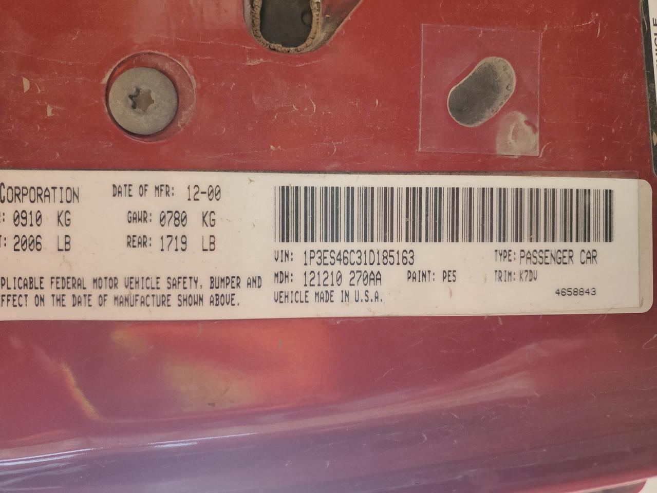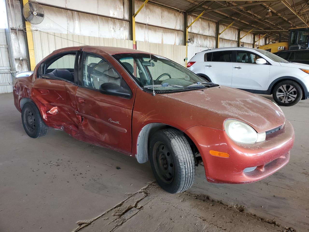 FairThe 2001 Plymouth Neon Base is orange, showing significant damage. The primary damage is to the side of the vehicle, with secondary damage including minor dents and scratches across the body. The wheels appear to be intact, but the exterior condition reflects considerable wear and tear, necessitating repairs. The lights and glasses are present, but their condition is not specified. Inside, the condition is rated as fair. The car's current state suggests it may be drivable after repairs.