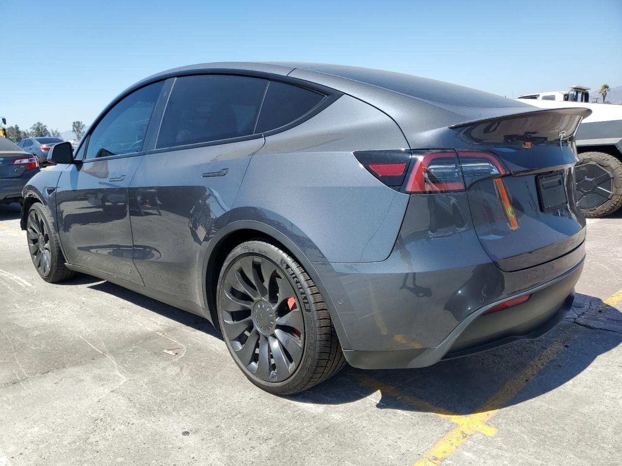 FairThis 2022 Tesla Model Y, painted in gray, presents with front-end damage, classified as 'Body' damage. The vehicle is a Run & Drive Verified. It has damage to the front end. Overall, the car's exterior condition is rated as 'Fair', with the interior in 'Good' condition. The overall state of the vehicle is 'Fair'.