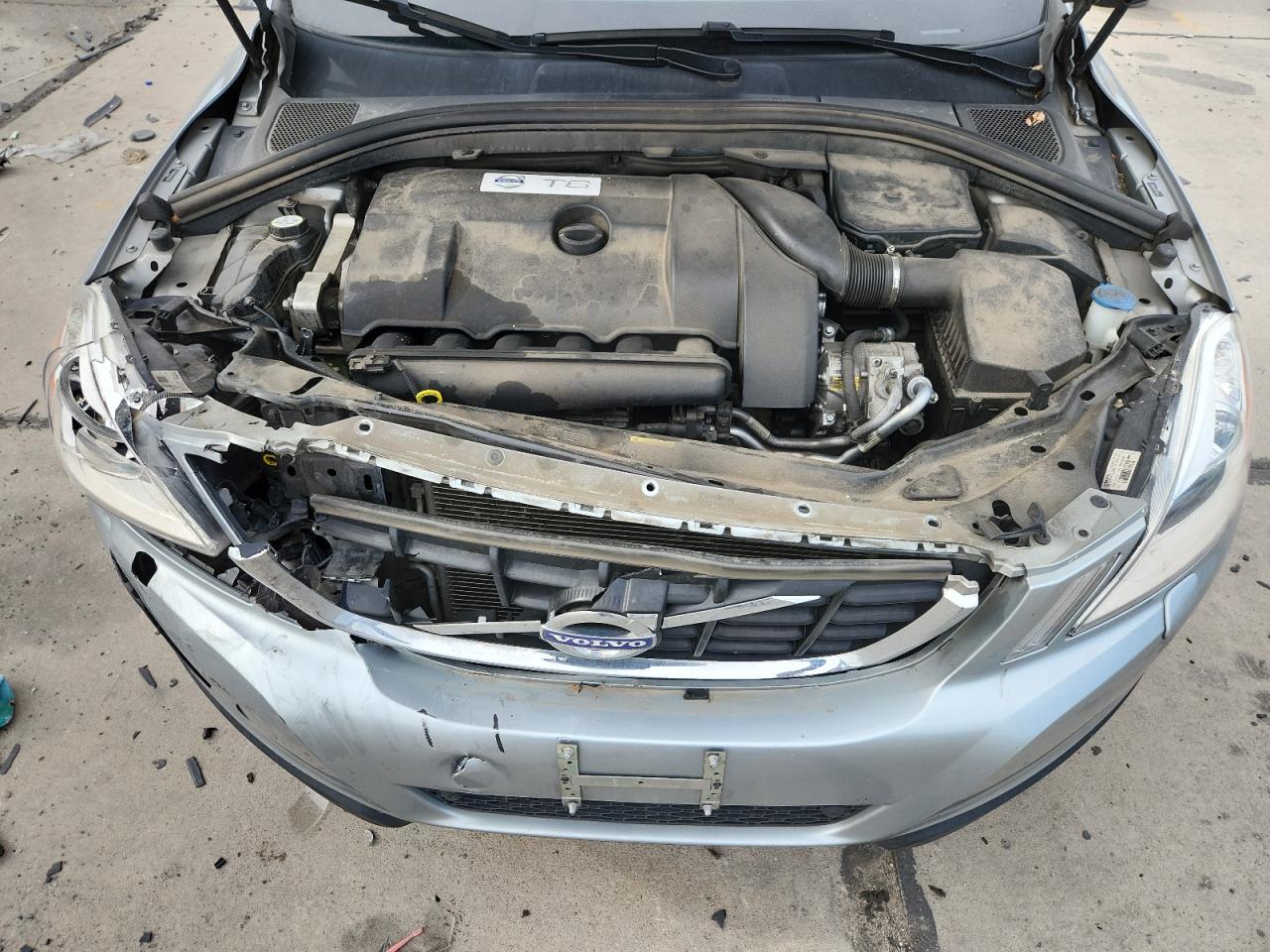 FairThis is a silver 2012 VOLVO XC60 T6 with front-end damage. The car starts and runs. Interior appears to be in good condition. Airbags are not deployed. The vehicle exhibits damage primarily to the front end, suggesting a collision. The body panels show signs of impact. Wheels appear to be in good condition. The lights and glasses have minor damage. Summary: The car has suffered front-end damage, body panels affected, but the interior is in good condition. It is drivable. Needs cosmetic repair or some parts replacement.
