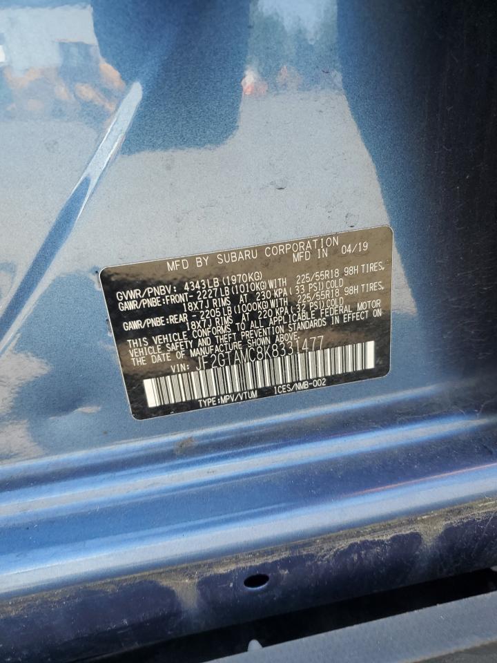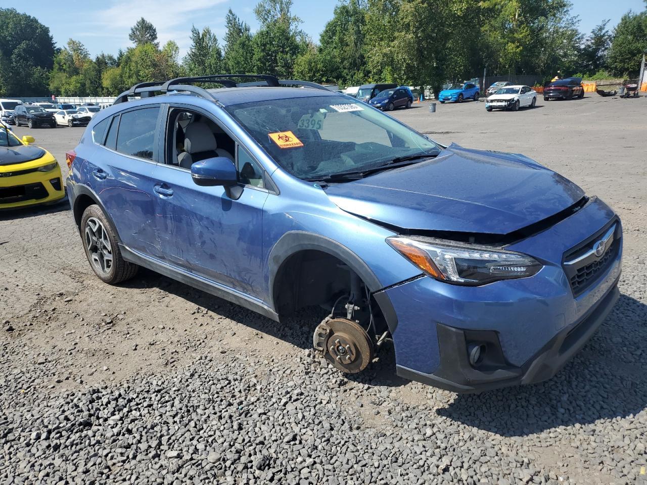 Fair2019 SUBARU CROSSTREK LIMITED, a compact SUV known for its all-wheel drive and fuel efficiency, shows significant front and side damage in these images. The blue exterior has sustained damage to the front end and the side, the car has a damaged wheels and no wheels in few images, with apparent damage to the body panels, lights and the glass. The interior appears to have airbag deployment with significant damage throughout.