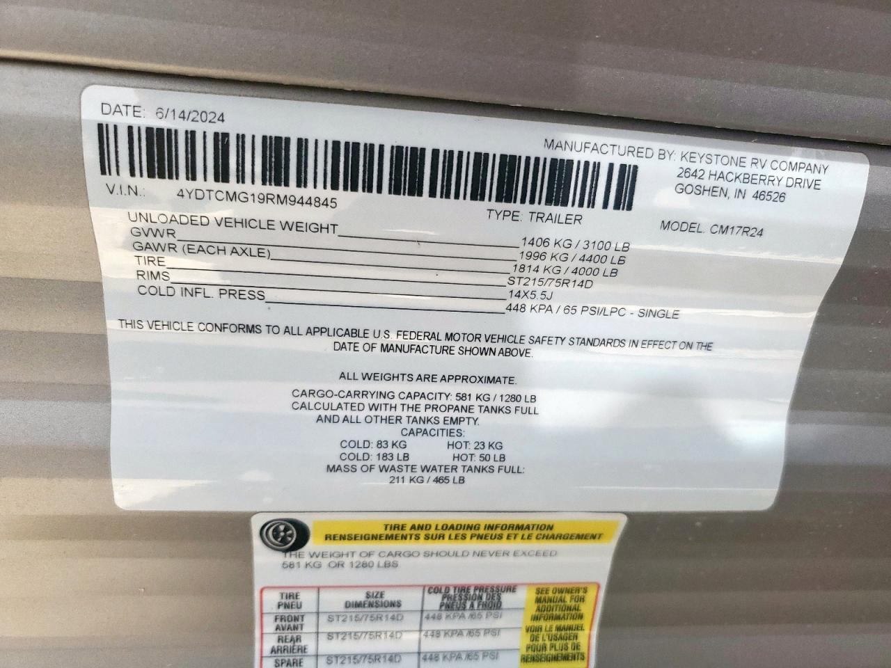 GoodThe 2024 KEYSTONE COLEMAN RV exhibits two-tone color scheme, potentially influenced by the DEFAULT start code. The primary damage is hail, with no secondary damage reported. The vehicle's body panels show signs of damage, but the wheels, lights, and glasses appear intact. Inside, the interior shows some wear and tear. The airbags seem to be in good condition. The trailer is drivable, and with the described hail damage, the exterior condition has been upgraded.