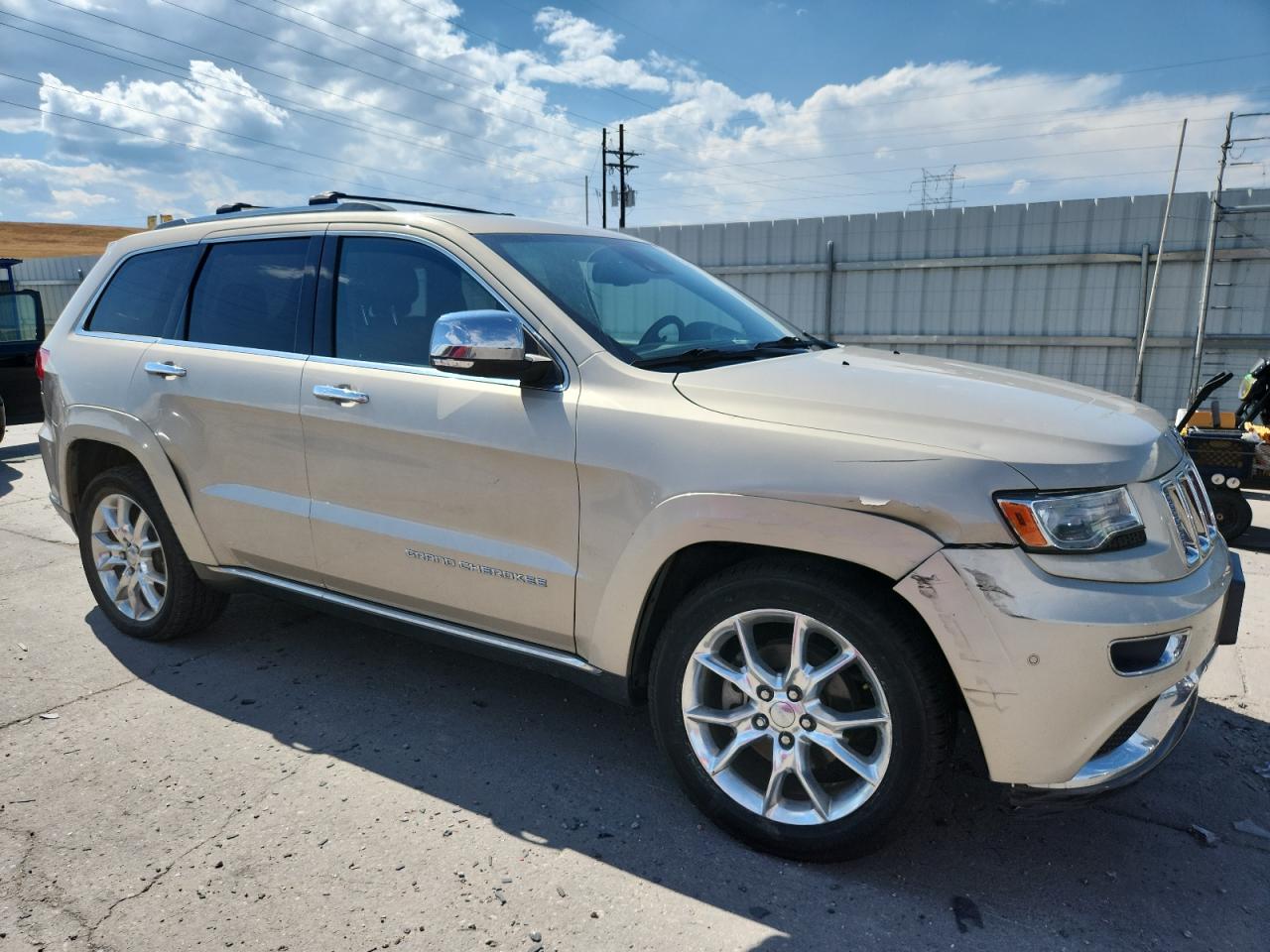 GoodThis 2014 Jeep Grand Cherokee, finished in gold, exhibits front end and hail damage. The vehicle is confirmed to Run & Drive Verified. It presents a combination of cosmetic and body damage, but remains drivable. The interior shows minimal wear, with good overall condition. The wheels and lights appear to be in good condition. The damage assessment includes a front-end impact and hail damage, affecting the vehicle's exterior. The interior is in very good condition. The car itself is a 2014 model Jeep Grand Cherokee.