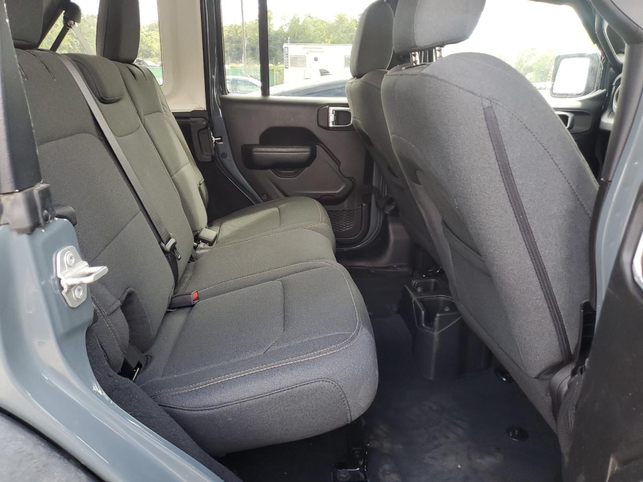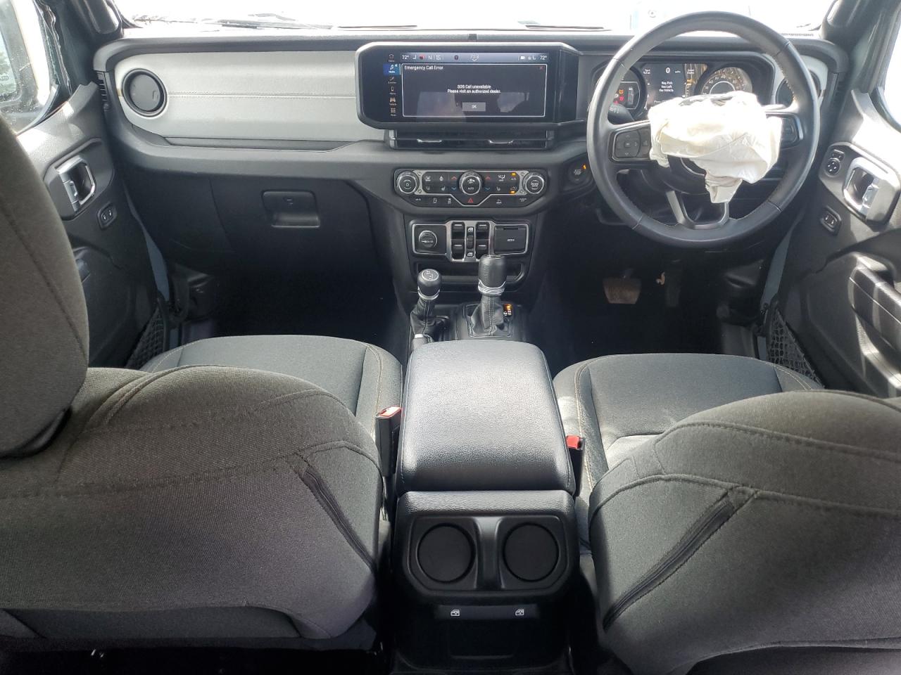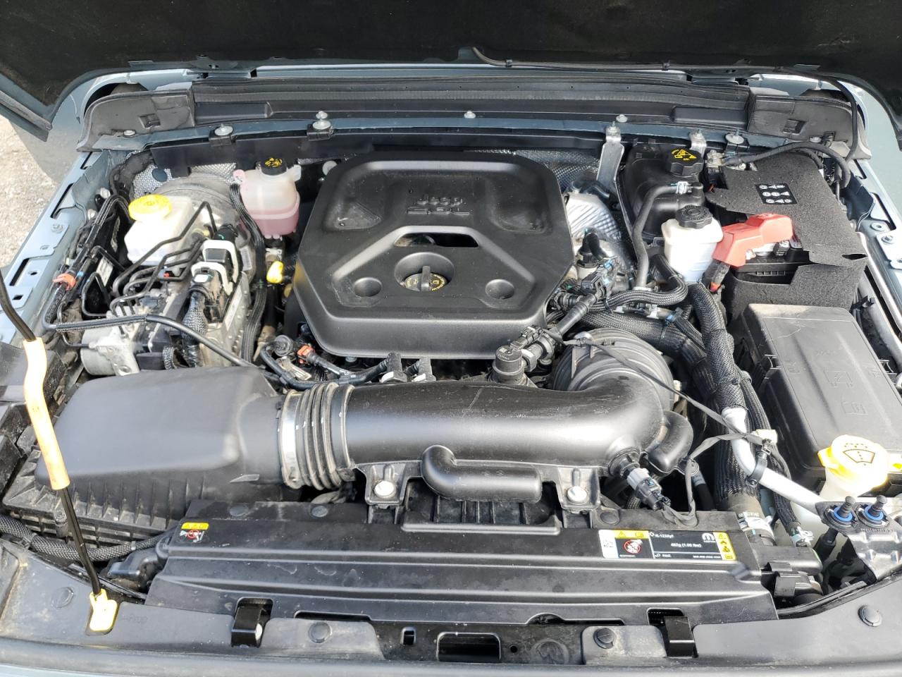 FairThe 2024 JEEP WRANGLER SPORT, colored gray, shows side and front-end damage, with a 'Run & Drive Verified' start code. This rugged SUV exhibits damage to the body panels. Inside, the interior condition is rated as Good with moderate visible damage or damage to exterior. The airbags have been deployed. The wheels appear to be fine.