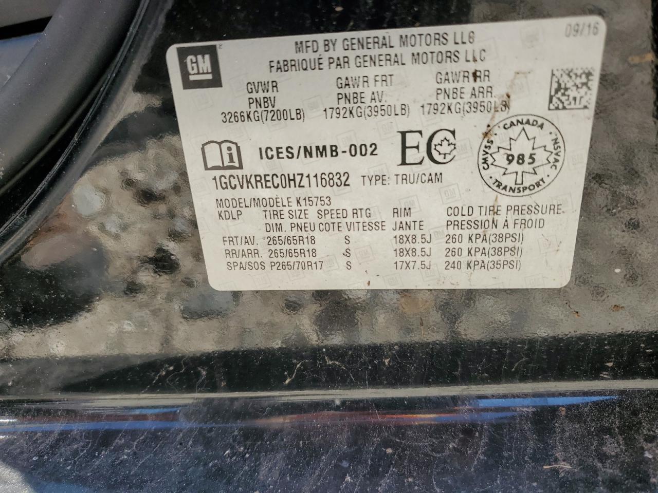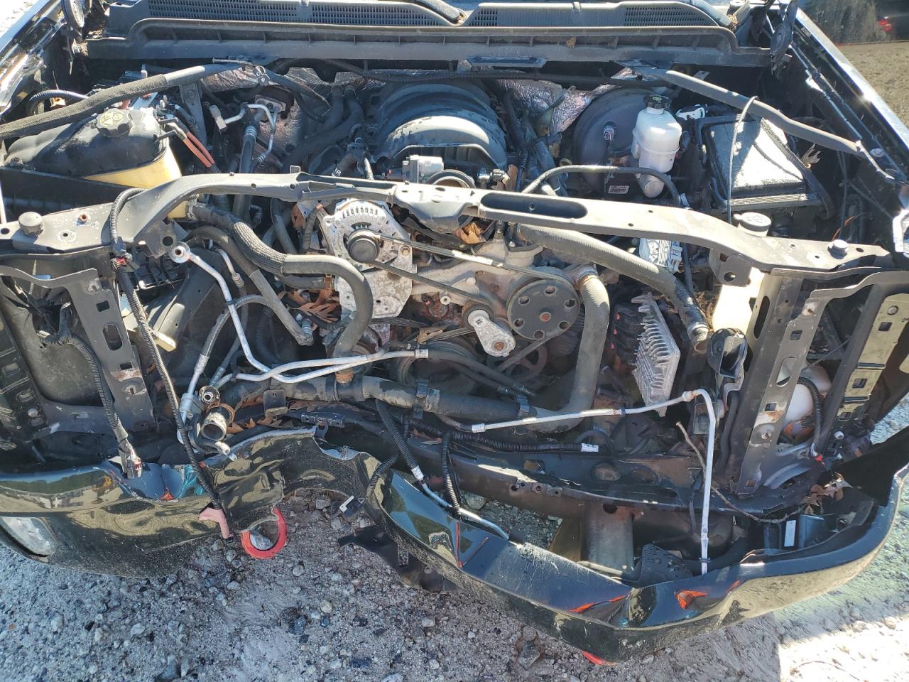FairThis is a black 2017 Chevrolet Silverado with front-end and undercarriage damage. The front of the vehicle shows significant damage, including a crushed front end. The undercarriage is also damaged. The interior appears to have some damage as well. The vehicle's airbags have deployed. This truck requires considerable repair and is likely not drivable.