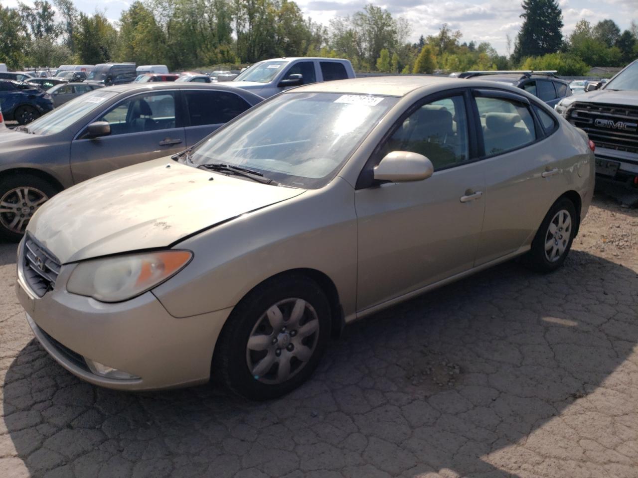 FairThe 2008 HYUNDAI ELANTRA GL exhibits damage primarily on its side and rear end. The tan-colored car shows visible body panel damage. The wheels appear intact, and the lights and glasses are in relatively good condition. The car has a Run & Drive Verified start code.