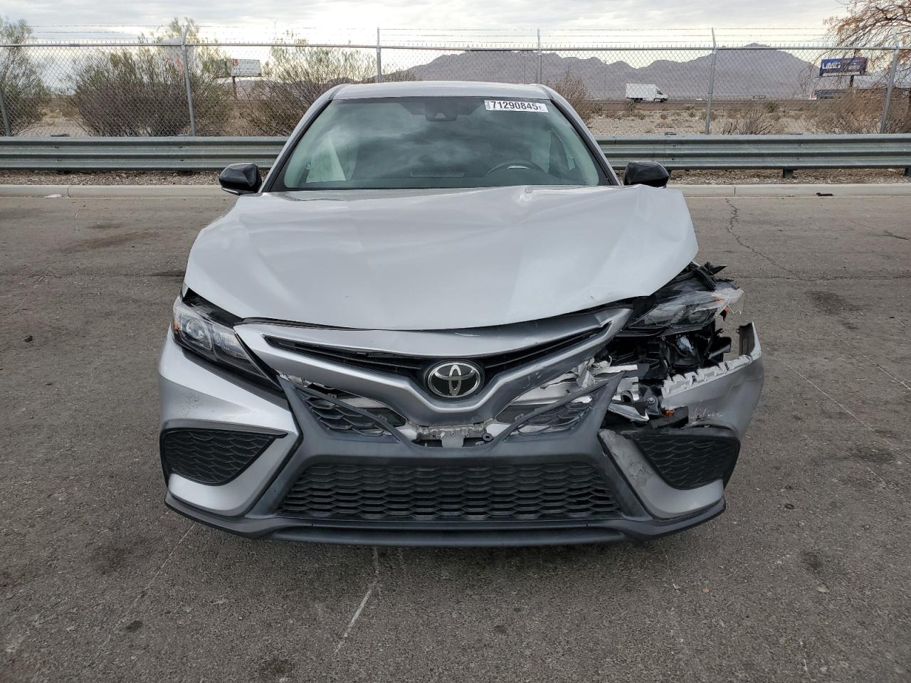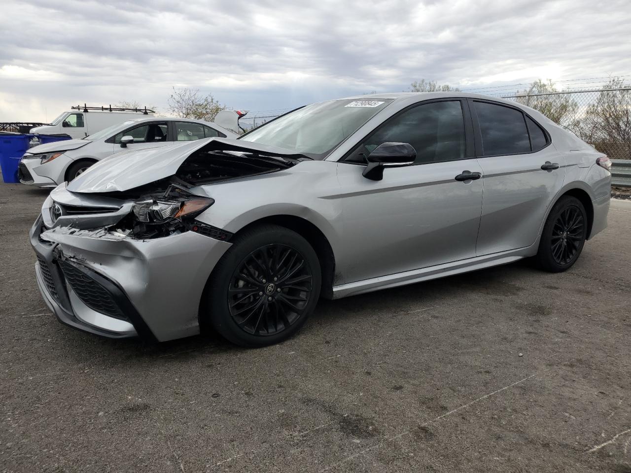 FairThe 2022 Toyota Camry SE is silver, with a Run & Drive Verified start code. The primary damage is to the front end, and there's no secondary damage. The car shows signs of impact damage, and the airbags have been deployed. The wheels appear intact. The lights and glasses do not have obvious damage. The interior shows signs of damage, with the airbags deployed. The exterior has visible damage from the front-end collision, suggesting the need for significant repairs.