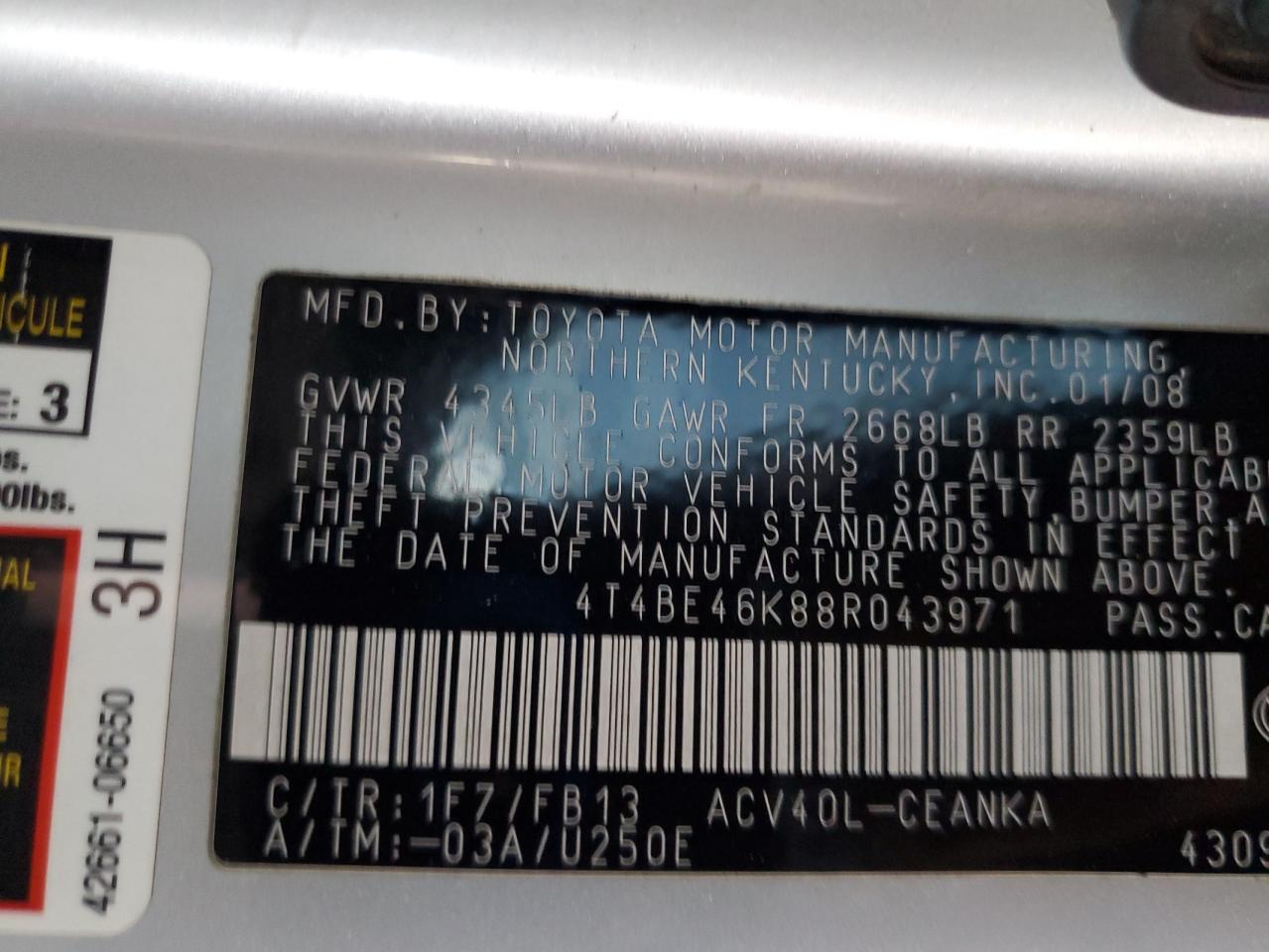 FairThe 2008 TOYOTA CAMRY CE is silver and has sustained significant damage. The primary damage is to the rear end, with secondary damage to the front end. The car is listed as 'Run & Drive Verified.' This vehicle has experienced substantial collision damage, particularly impacting its rear, with front-end components also affected. The interior shows signs of use. The condition of the wheels is not specified from images. Lights and glasses appear to have damage. The vehicle is drivable.