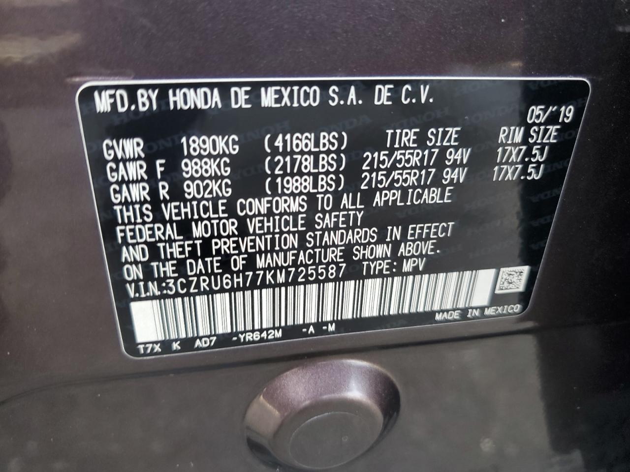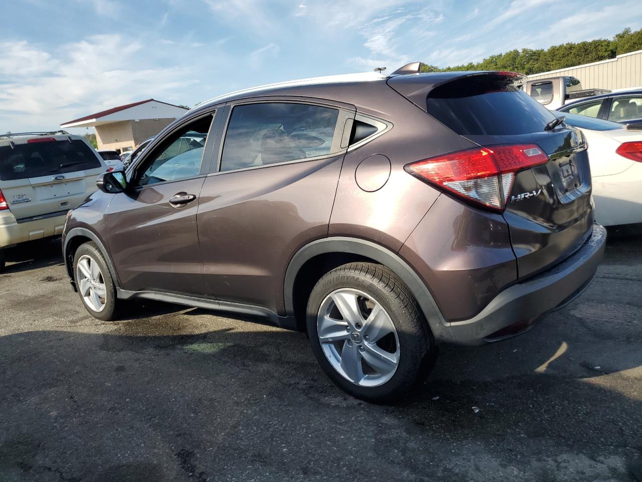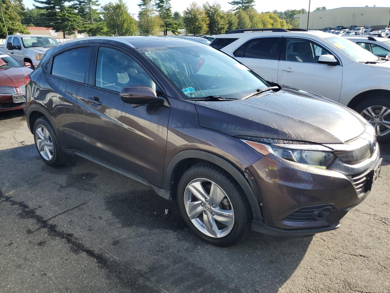 GoodThis is a 2019 HONDA HR-V EXL, burgundy in color. The primary damage is minor dents/scratches, with secondary damage to the front end. The car starts, runs, and is drive verified. The overall condition is considered good. The interior shows minimal wear and tear and is in very good condition. The wheels and lights appear to be in good condition. The glasses show no significant damage. The car has some cosmetic and body damage but is drivable.
