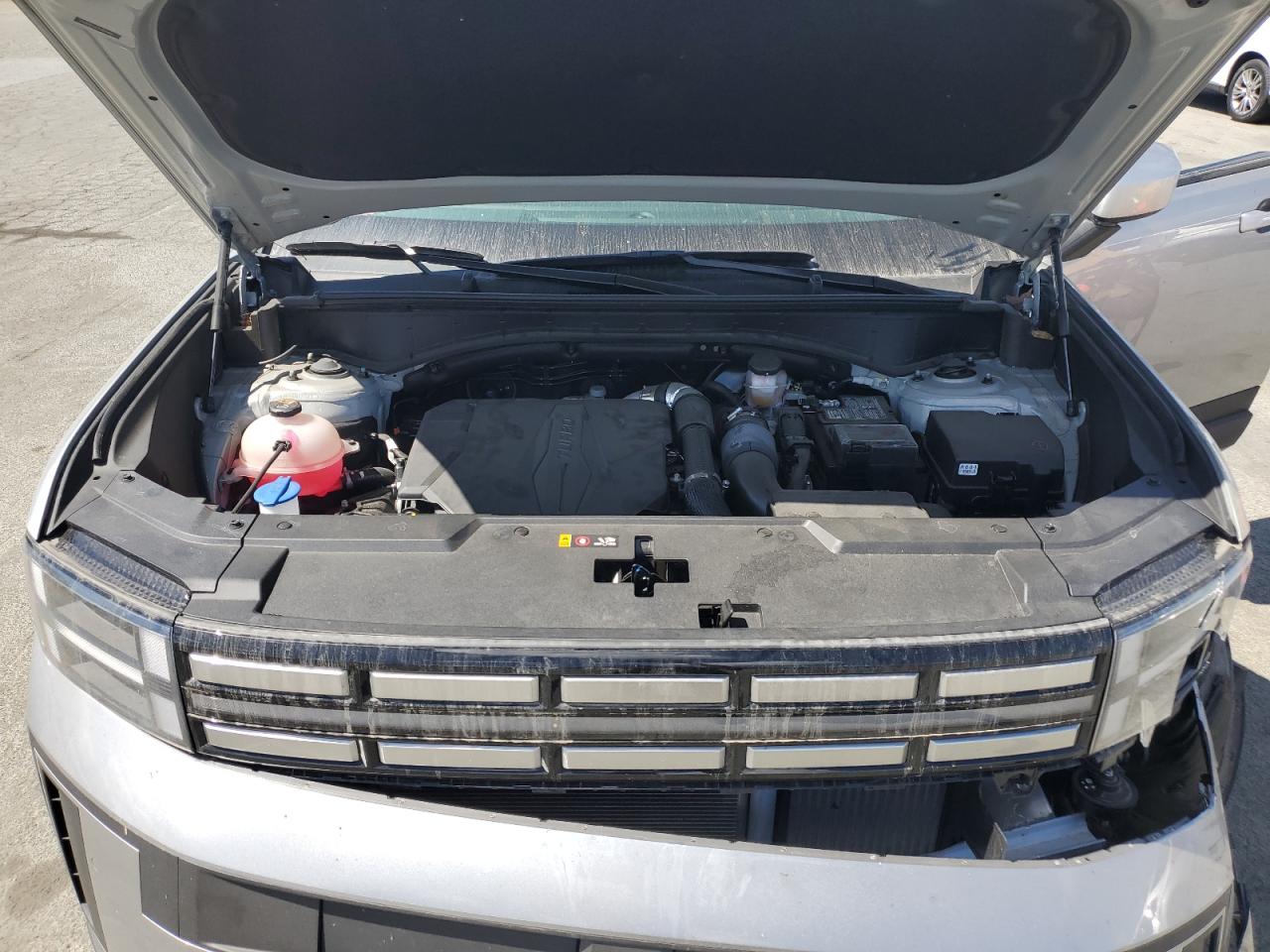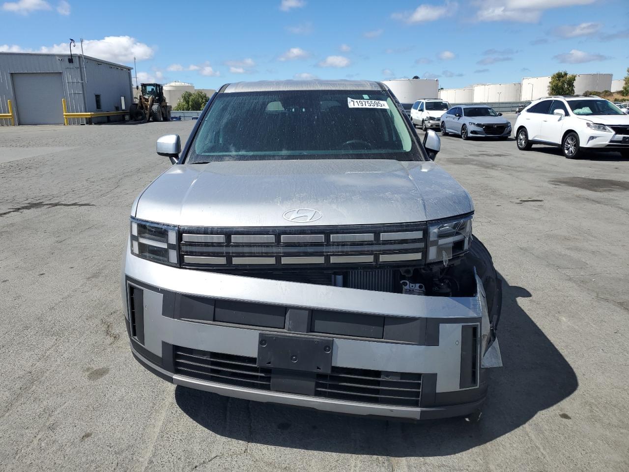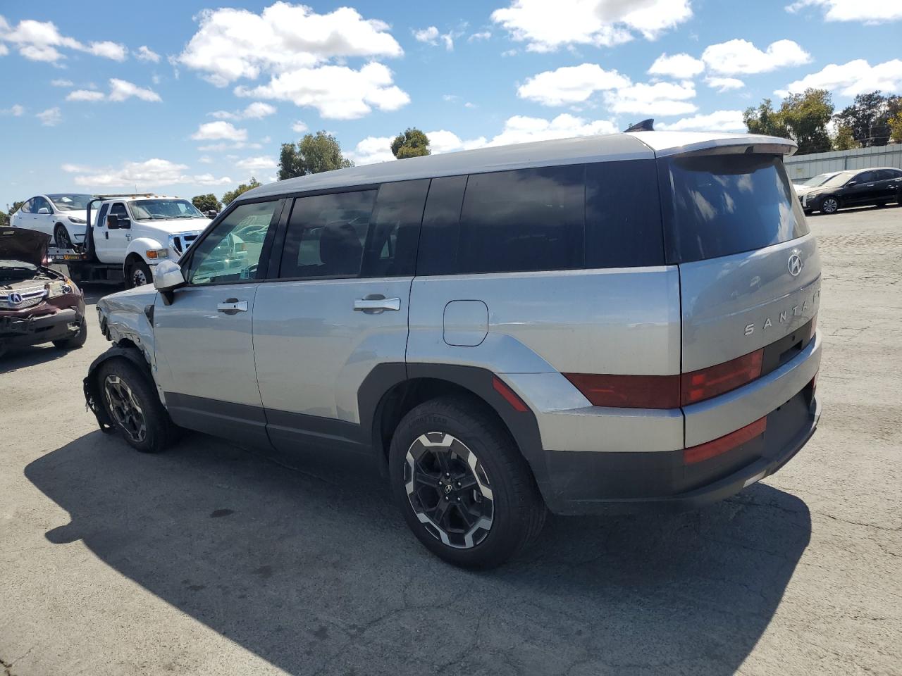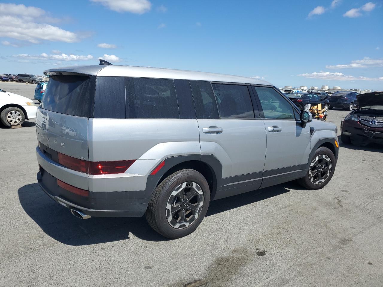 FairThe HYUNDAI SANTA FE S 2024 is a silver SUV. It has suffered significant front-end damage in a collision, impacting the bumper, hood, and front panels. The vehicle starts, but the extent of mechanical damage is unknown. The interior appears to be in decent condition, with no apparent airbag deployment. The wheels seem intact, but the lights and glasses may be affected by the front-end impact.