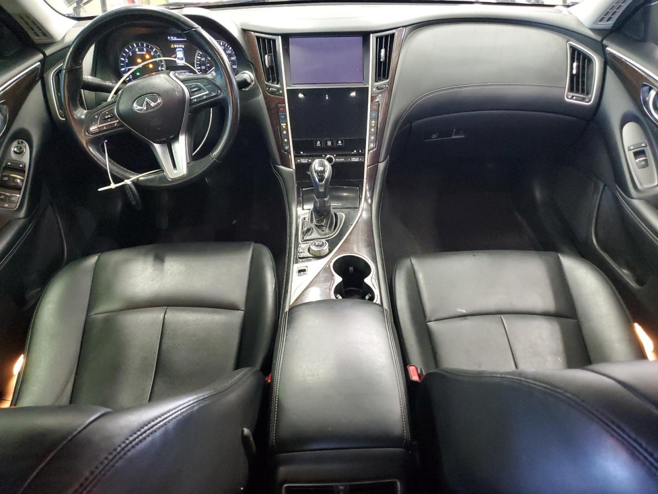 GoodThe INFINITI Q50 LUXE 2018 is a black sedan showing front-end damage and minor dents/scratches. It's a Run & Drive Verified vehicle. The car's exterior condition is considered good, with minor visible damage. The interior also appears to be in good condition with some wear and tear. Overall, the vehicle is in good condition, suggesting it's drivable and may only require replacement of a few parts. The wheels and lights appear to be intact.