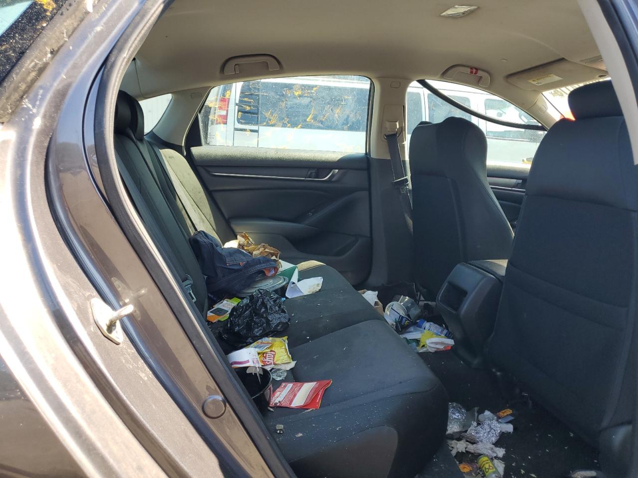 FairThe 2019 Honda Accord LX in gray exhibits significant front-end damage, indicating a collision. The front bumper and some body panels are severely damaged, and it has scratches. The car's interior shows signs of wear, with visible dirt and debris. The wheels appear to be intact. The damage suggests the vehicle may require extensive repairs to restore it to a drivable condition.