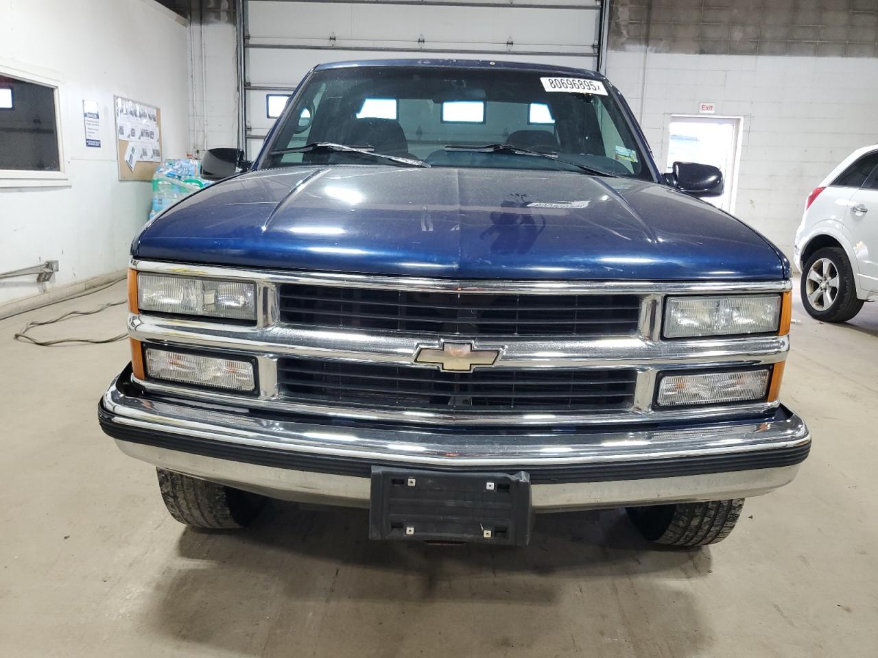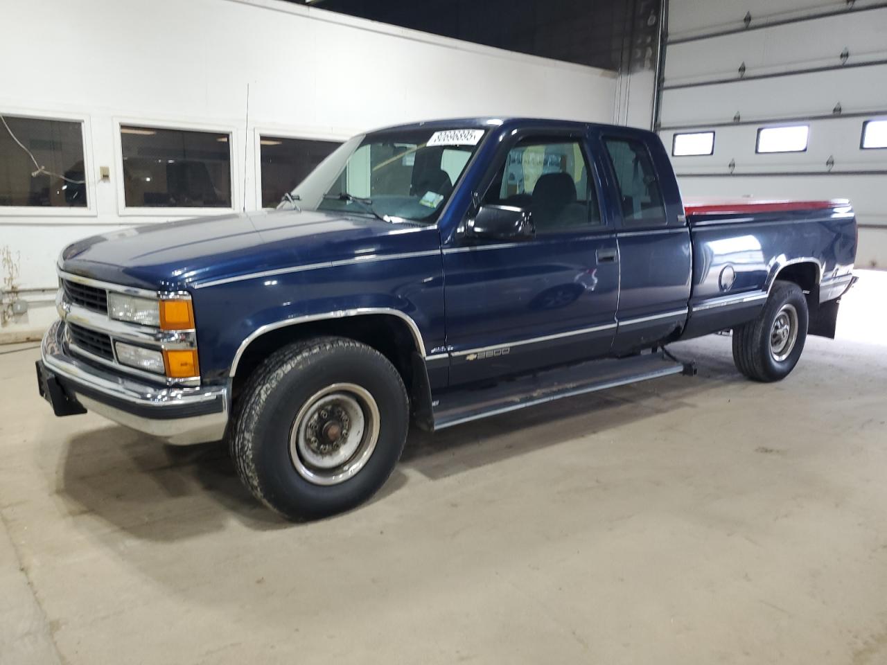 FairThis is a 1995 Chevrolet GMT-400 C2. The primary damage is on the SIDE, and secondary damage is from HAIL. The car is blue and has a Run & Drive Verified start code. This truck exhibits visible signs of hail damage across the body panels, particularly on the side. While the wheels appear to be in good condition, the exterior shows moderate damage. The interior condition is generally good, with some wear and tear. The vehicle is drivable but requires repairs to address the body damage.