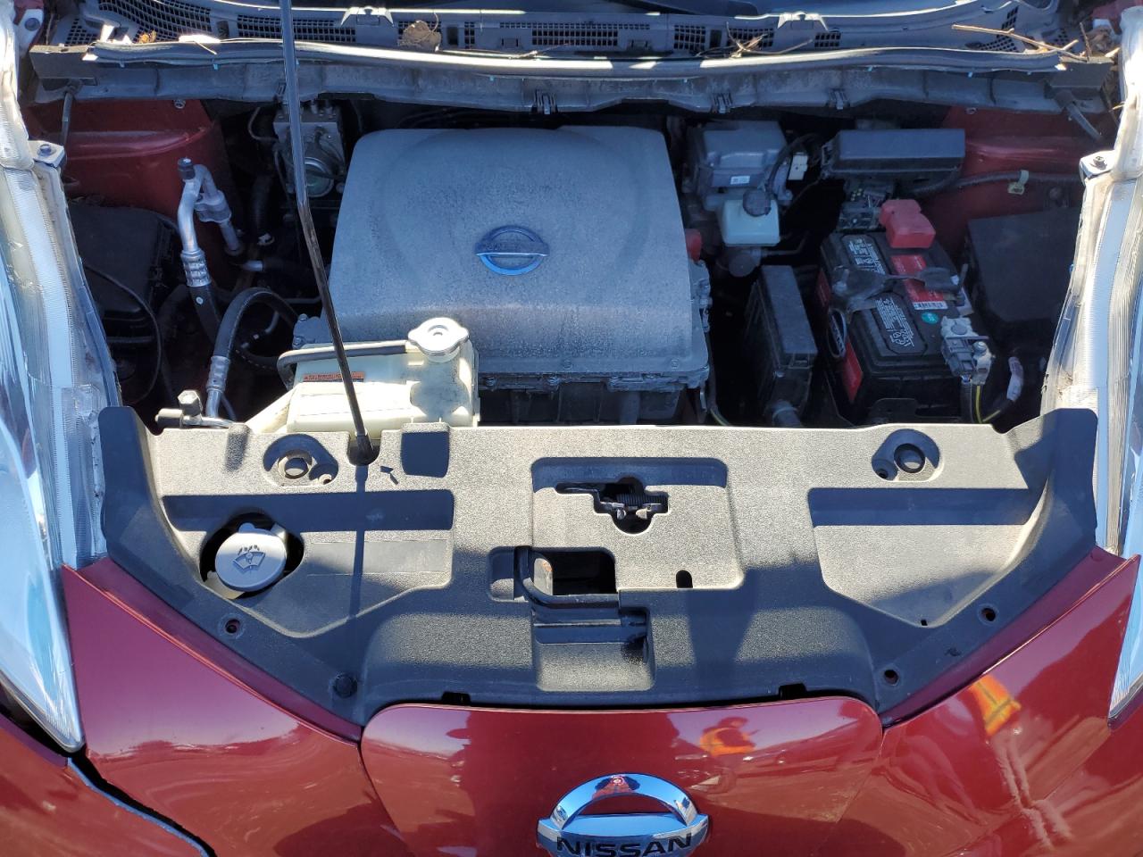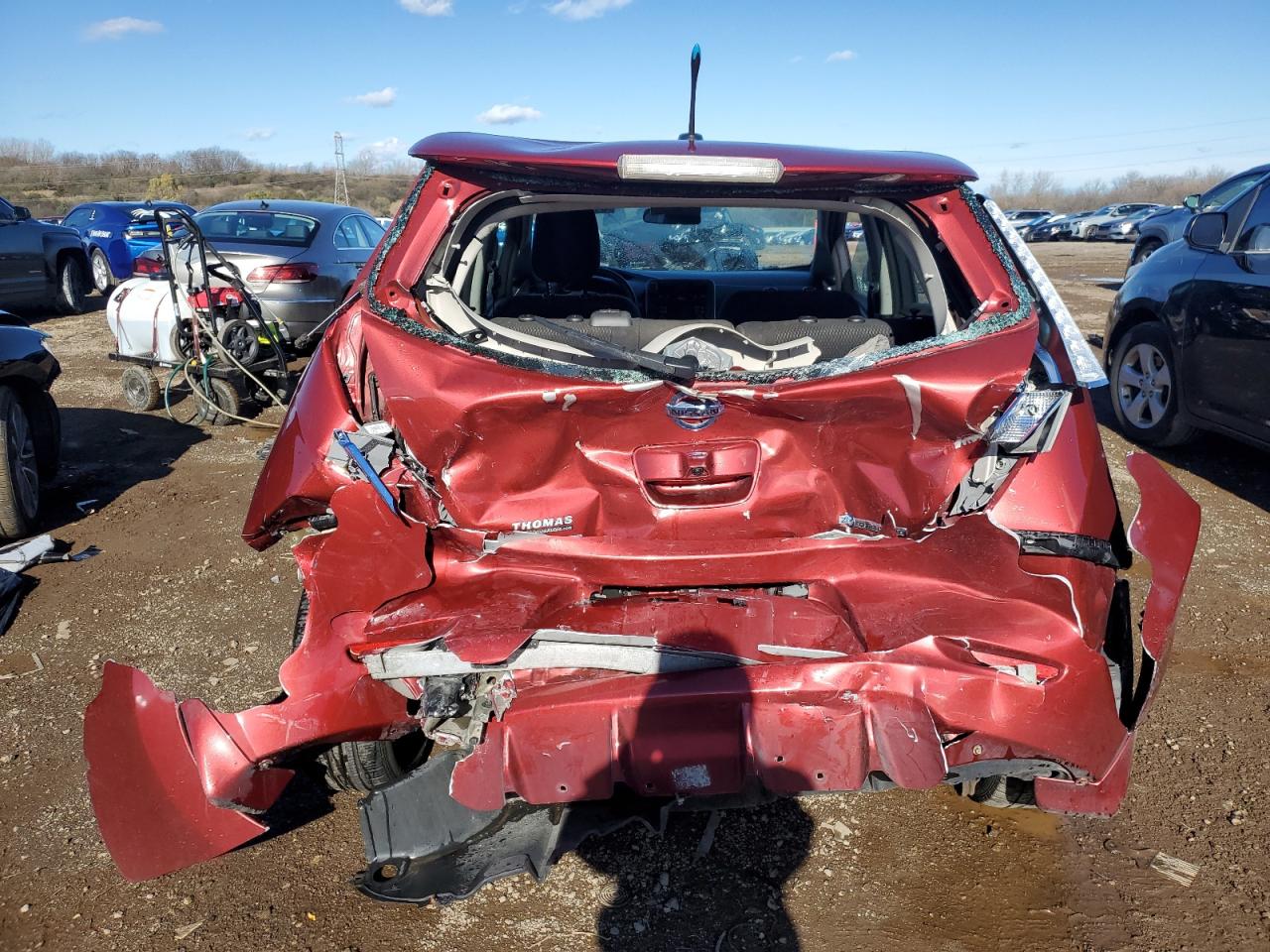 FairThis is a 2014 NISSAN LEAF S with severe rear-end damage. The car is red and has a Run & Drive Verified start code. The vehicle's rear end is heavily damaged, with significant impact to the body panels and the rear glass is missing. The interior shows signs of wear and tear, with visible damage to the seats and dashboard. Airbags are not deployed. The car is drivable but requires considerable repair. This NISSAN LEAF S has a significant amount of damage. The wheels appear to be in acceptable condition, but with the rear end damage, it is unlikely that the car is roadworthy in the current state. The car presents cosmetic and structural issues. The lights seems ok. The damage is primarily to the rear, with secondary damage.
